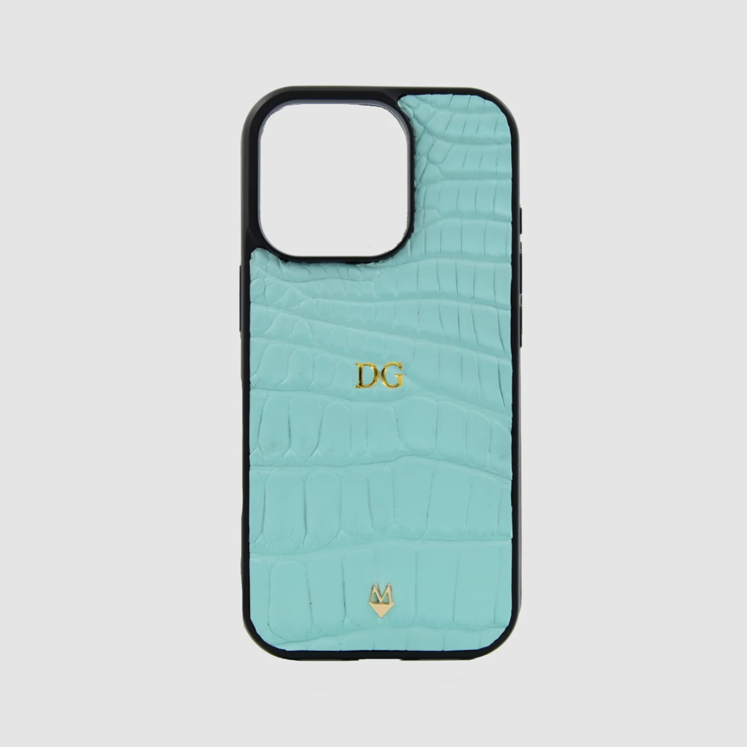 Cover in vera pelle di Coccodrillo iPhone MagSafe 17/16/15/14/13/12 Celeste Laguna