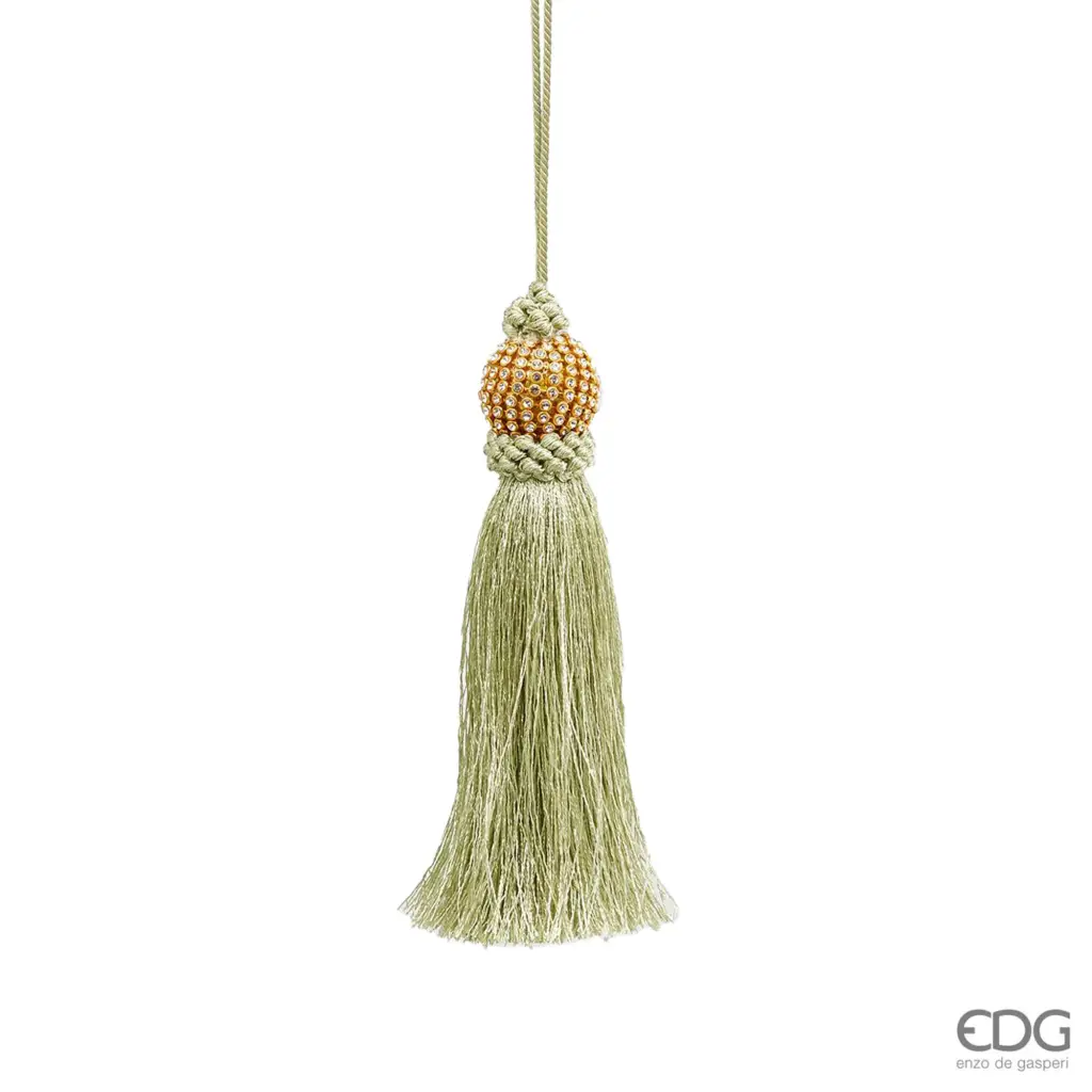Decorazione nappa della linea Jewels di EDG – Enzo De Gasperi. La nappa è perfetta per decorare angoli di casa, come le maniglie di porte e finestre, ma anche da utilizzare come addobbo per impreziosire l’albero di Natale.
