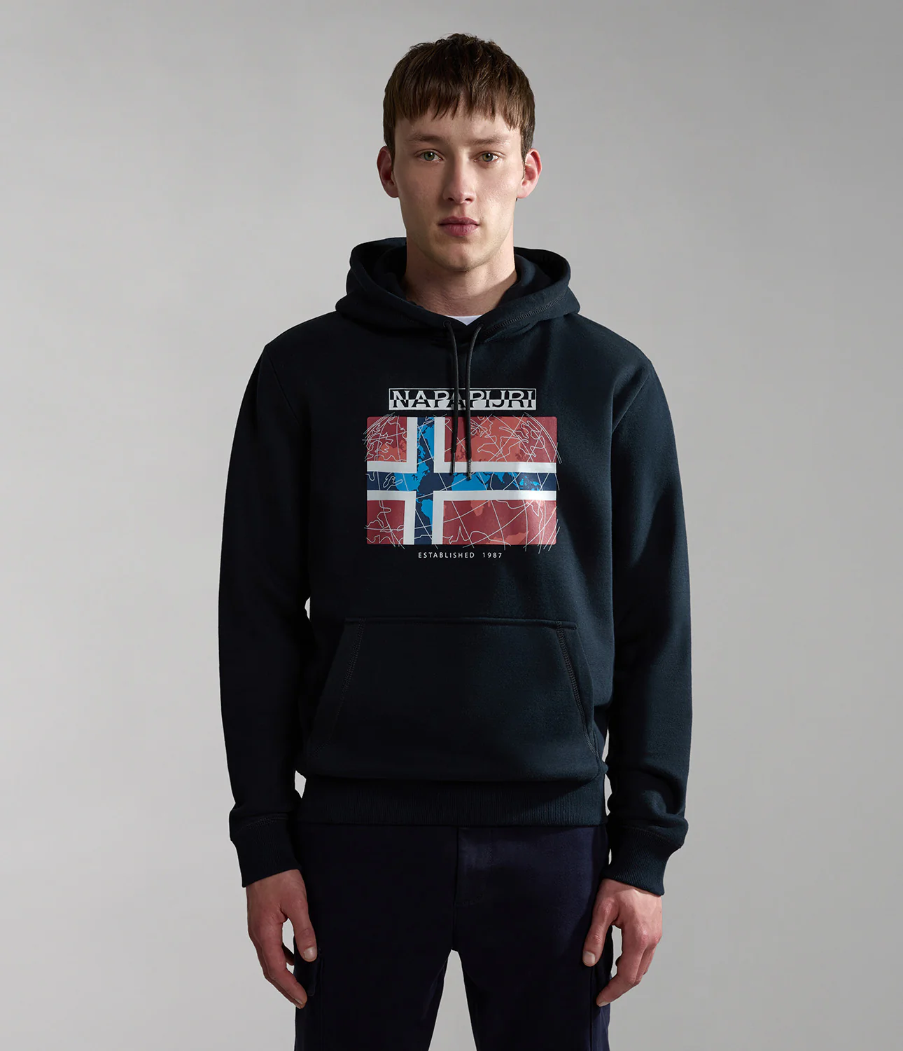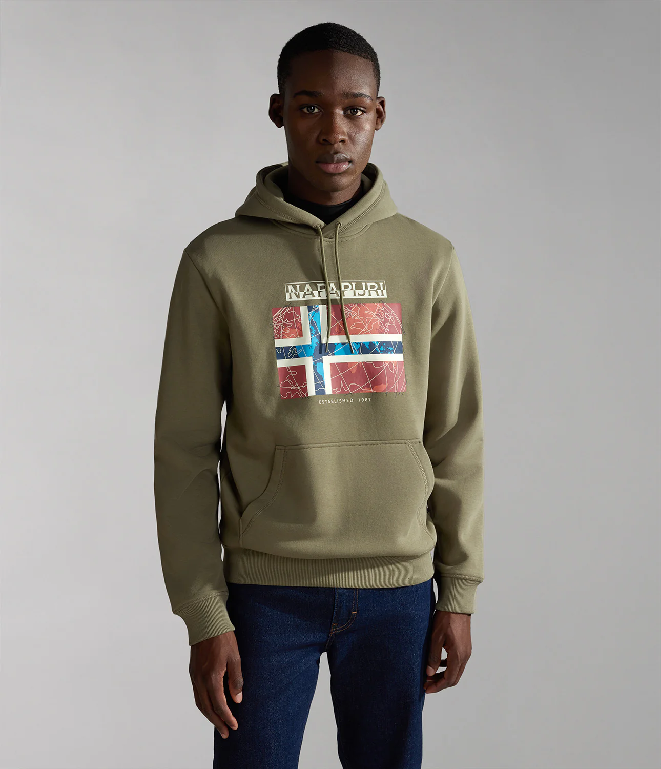 Sfoggia uno stile casual ed elegante con questa felpa uomo Napapijri! Realizzata con 90% cotone e 10% poliestere, รจ dotata di cappuccio con un dettaglio: una bandiera stampata sul davanti insieme al logo del brand. Grazie alla sua composizione, รจ perfetta per le temperature autunnali! Una felpa che non ti lascerร di certo a bocca asciutta! Disponibile in nero e verde.