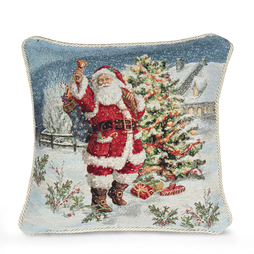 Fodera arredo in gobelin 40×40 cm in fantasia Din Don Lurex con cordoncino. Il gobelin è un tessuto molto morbido e corposo che si presta per l’uso nel settore del tessile da arredo. La sua trama formata da fili di diversi colori e dimensioni forma fantasie e disegni anche molto complessi che permettono di completare con gusto e ricercatezza ogni ambiente. Il suo disegno simpatico e allegro, con Babbo Natale che suona la sua campana a festa è reso ancora più bello e brillante da una cascata di Lurex che ne fa risaltare i meravigliosi colori. La fodera è di facile utilizzo grazie alla cerniera a scomparsa che si trova sul fondo per inserire l’imbottitura interna e di facilissima manutenzione. Interamente Made in Italy. Il prezzo si riferisce alla sola fodera, senza l’imbottitura interna.Disponibile nella dimensione: 4×40 cm- Fodera per cuscino arredo in gobelin con cordoncino- Fantasia vivace e calda- Made in Italy- Riferimento articolo: DINDONFGC40XMAS- Composizione: 40% Cotone, 36% Poliestere, 24% Acrilico
