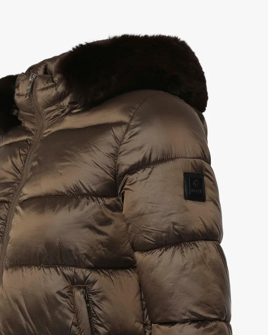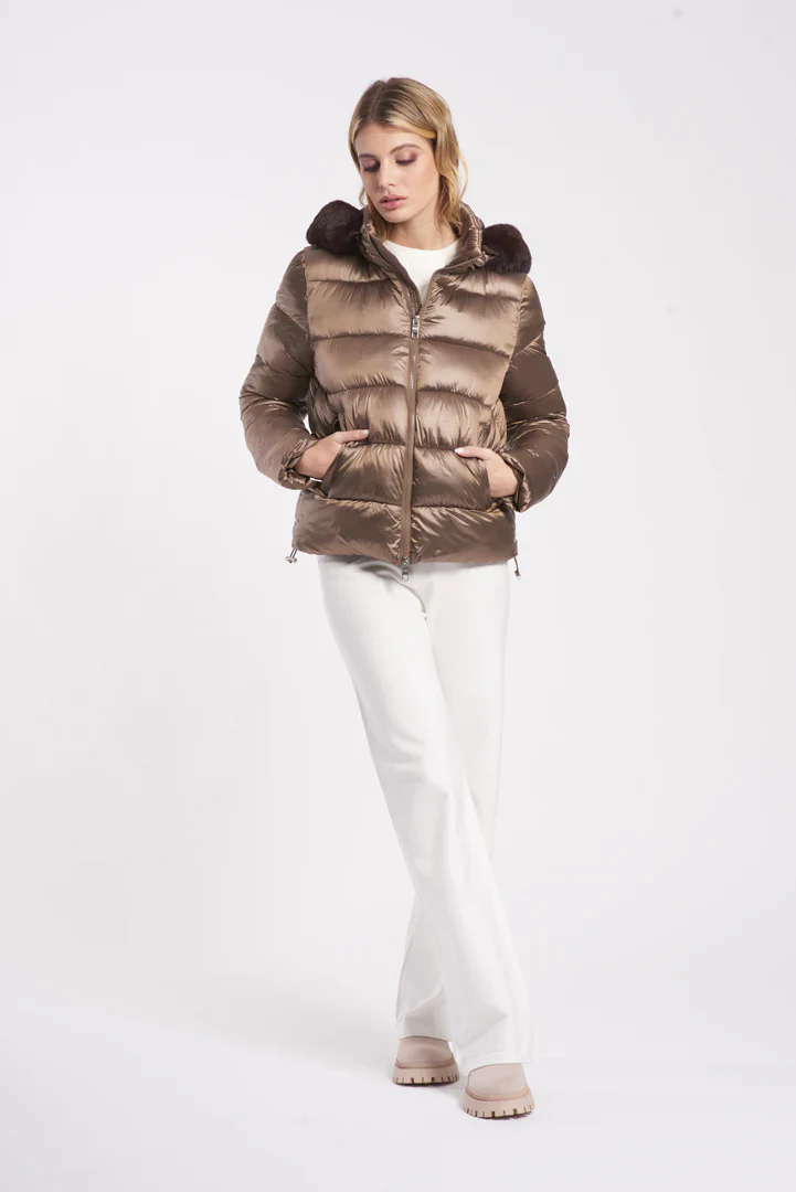 Questo giubbino donna Datch DW2292 unisce stile audace e comfort: il cappuccio con bordo in finta pelliccia aggiunge un tocco di personalitร deciso, mentre il micrologo sulla manica sottolinea lโoriginalitร del design. Perfetto per chi vuole distinguersi anche nelle giornate piรน fredde.