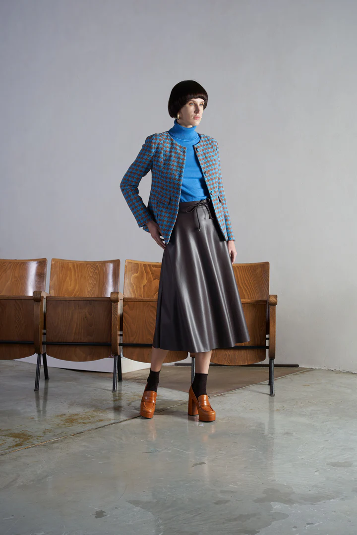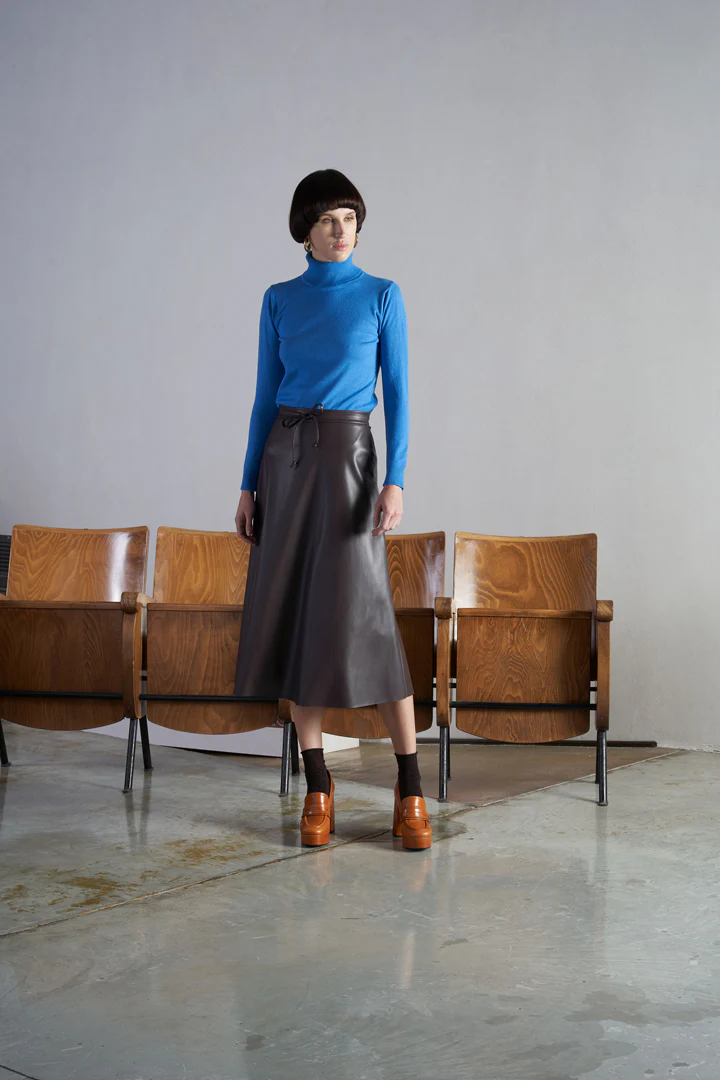 Aggiungi un tocco di eleganza al tuo look: una gonna dallo stile unico ed esclusivo realizzata in similpelle di colore moka e con design sotto al ginocchio, che sicuramente attirerร l’attenzione. Abbinala con una semplice t-shirt per un look casual e di tendenza. Un pezzo prezioso da sfoggiare! Codice articolo GIRAT