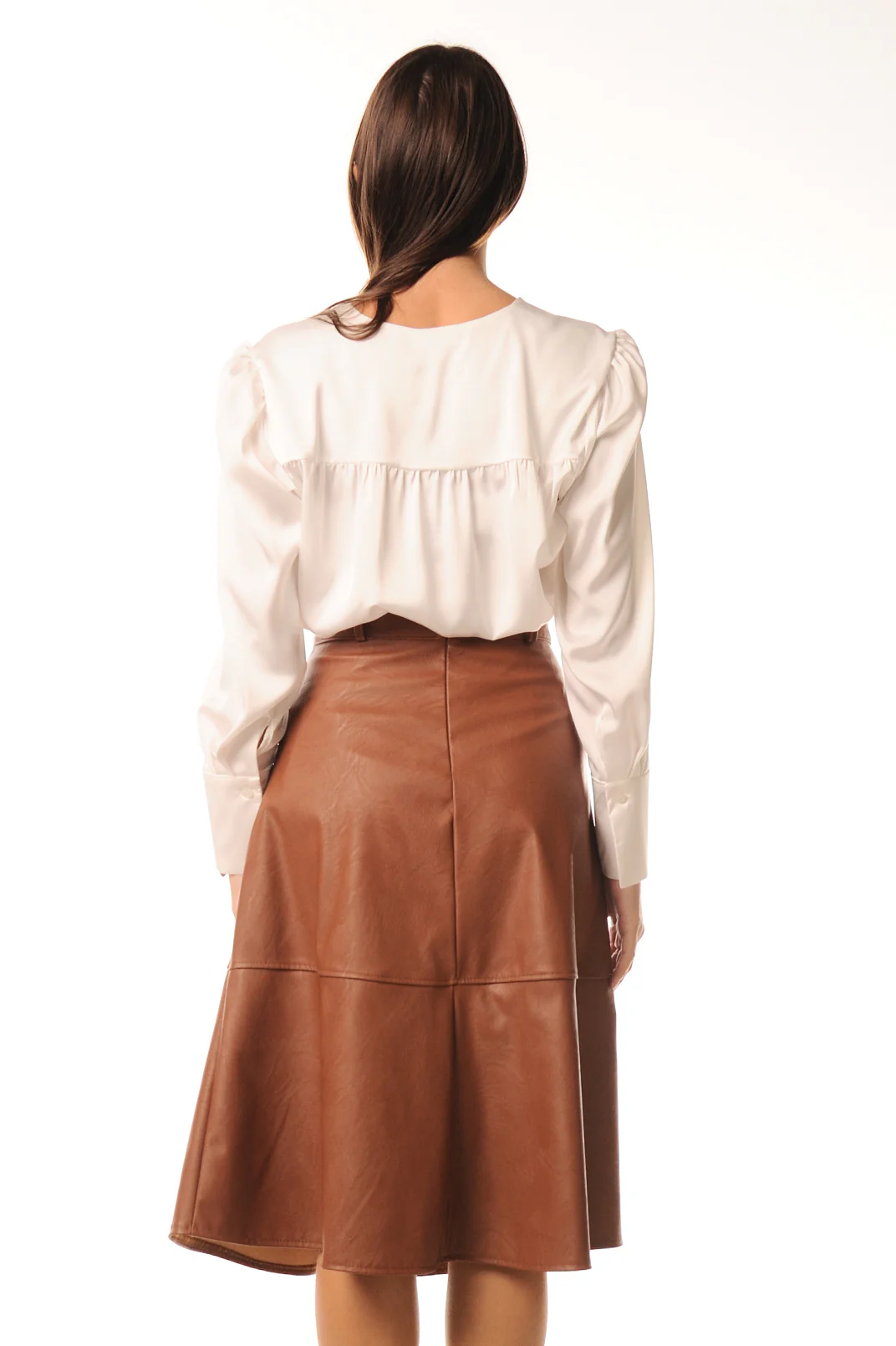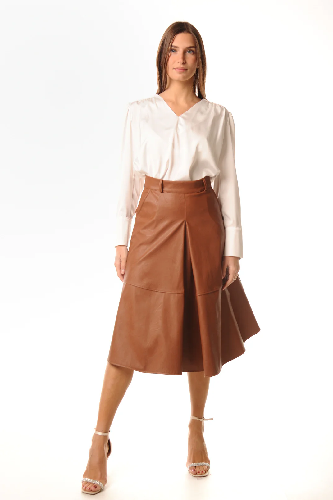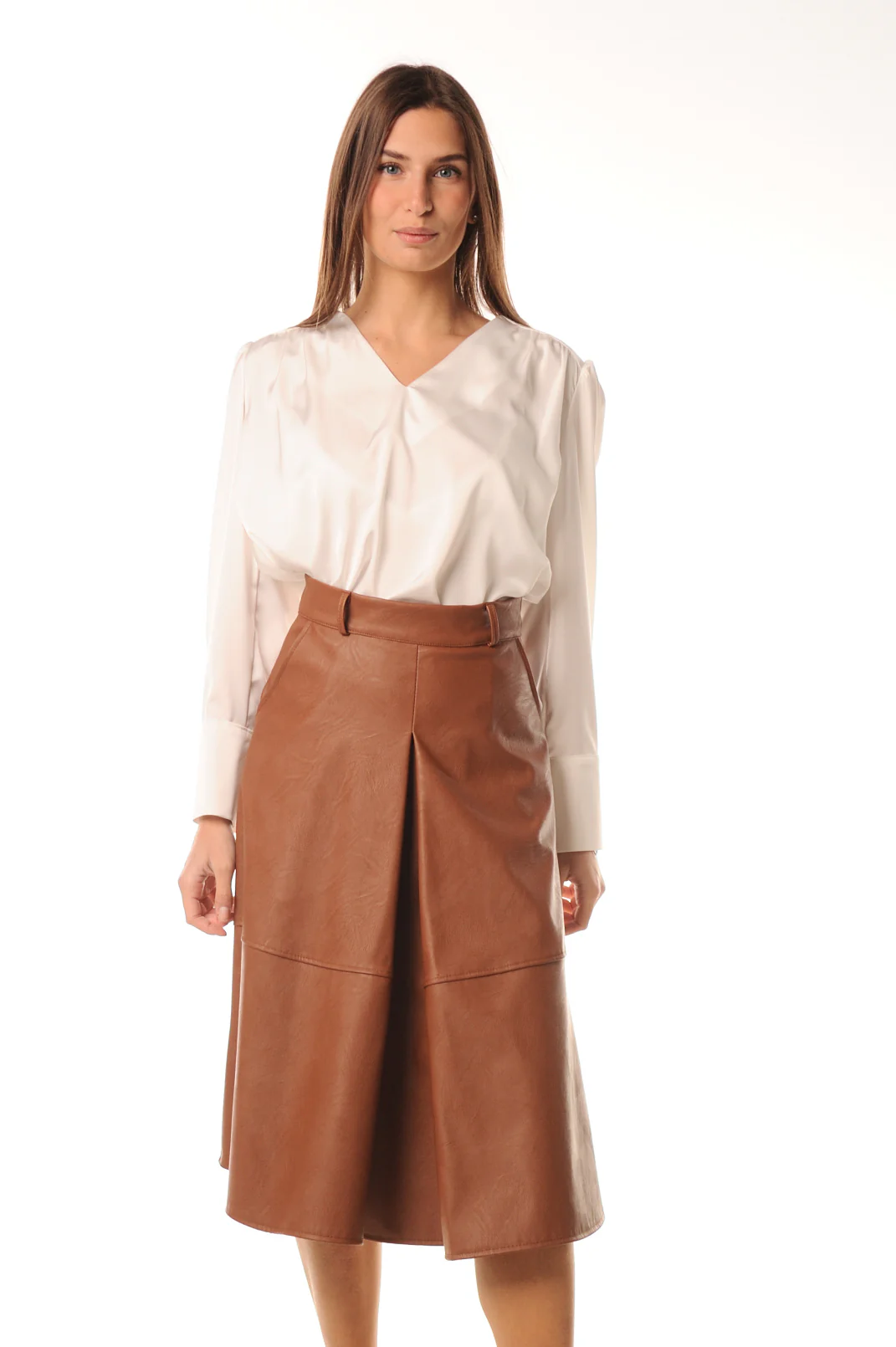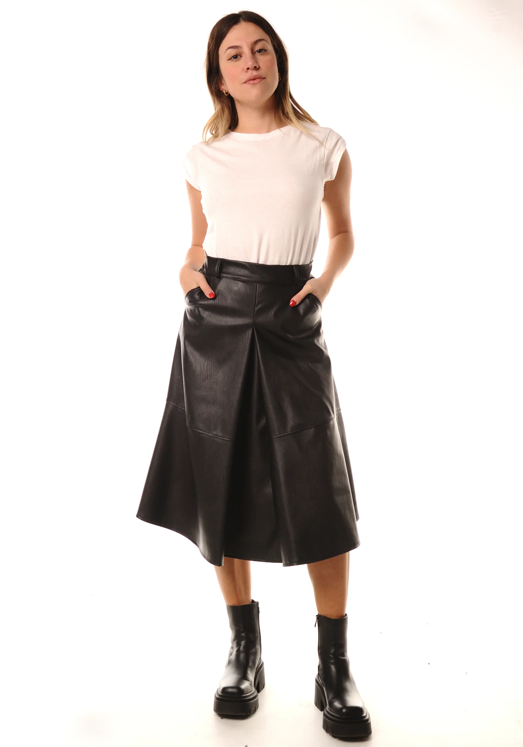 Vestiti con stile con questa gonna donna Lokita in similpelle disponibile in colore nero o color terra. Fino al ginocchio, questa gonna รจ realizzata al 55% in poliuretano e al 45% in poliestere, offrendo comfort e resistenza per un look unico.