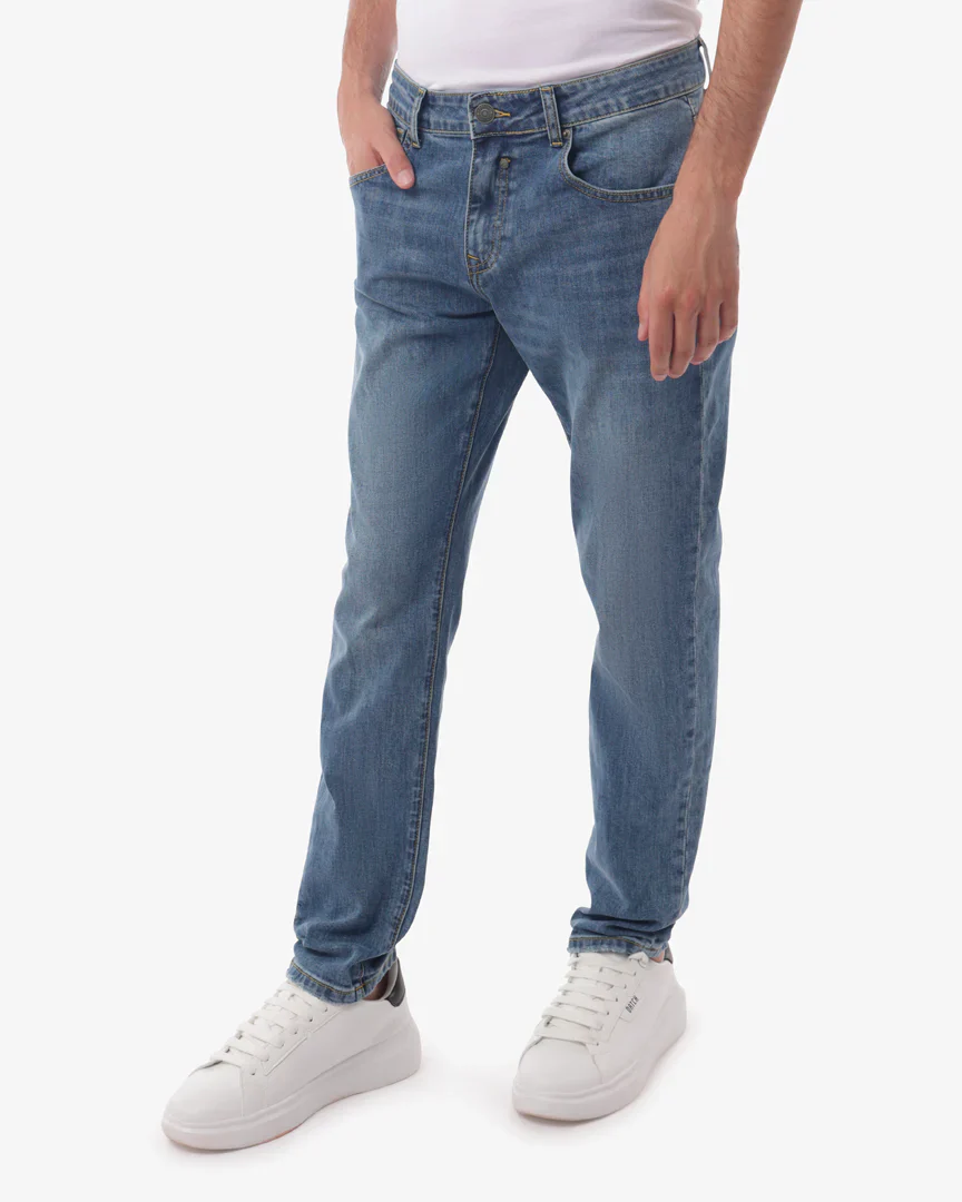 Jeans slim fit in medium blue che catturano l’essenza dello stile urbano contemporaneo. La vestibilitร aderente esalta la silhouette mantenendo il massimo comfort, grazie a una costruzione pensata per muoversi con te. Versatili e audaci, passano senza sforzo da un look casual diurno a un outfit serale piรน raffinato. Un capo essenziale che non teme di fare scena.