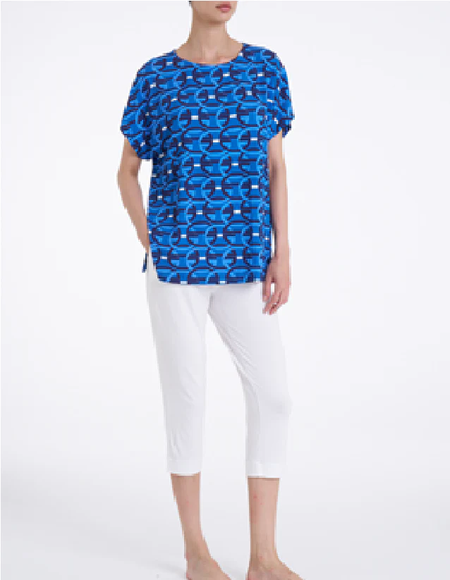 Maglia donna morbida e leggera con manica larga corta e girocollo.