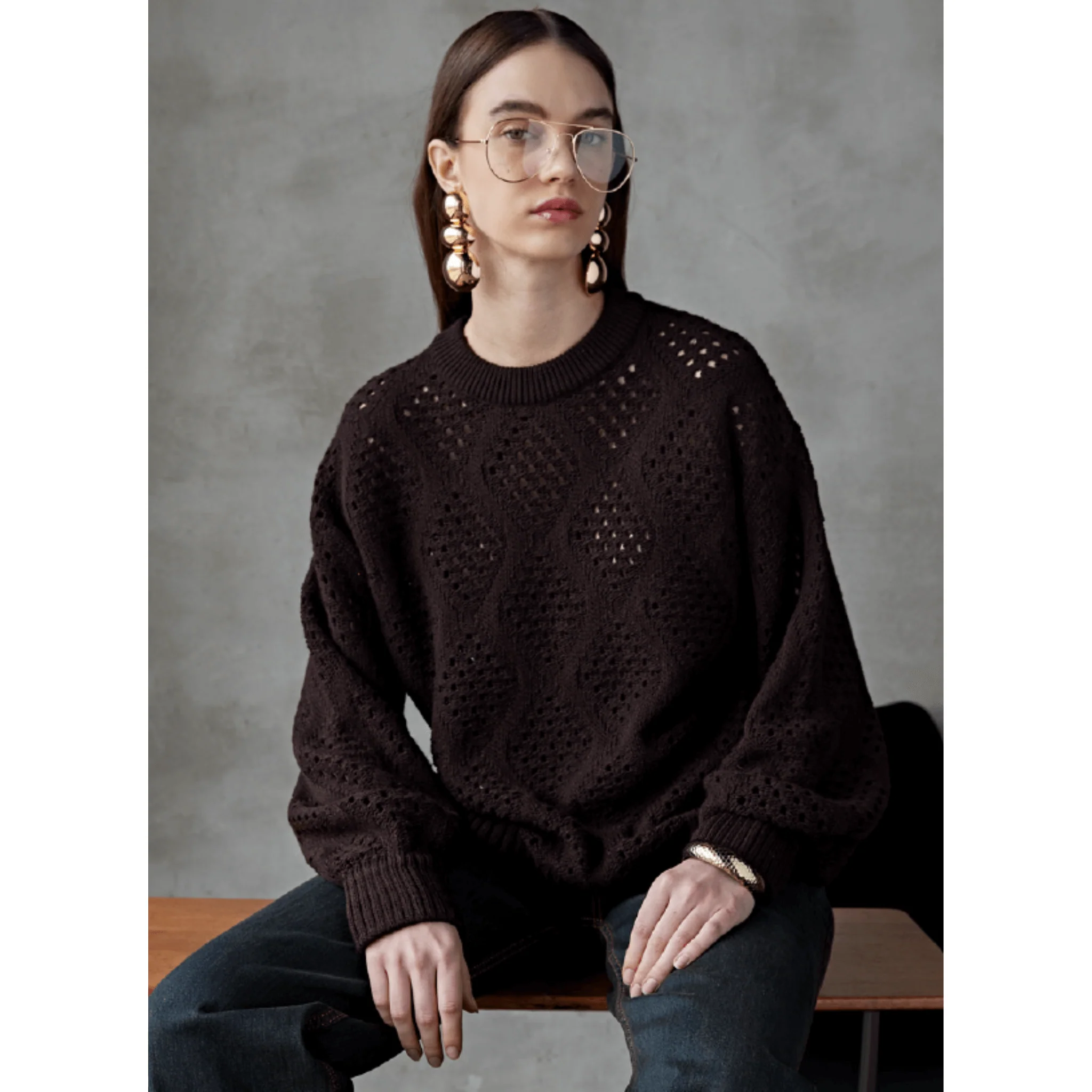 Maglione girocollo Celye presenta un sofisticato motivo a rombi traforati, che unisce stile e texture delicata. Composto al 30% da lana, garantisce calore e traspirabilità, ideale per un raffinato abbigliamento a strati o da indossare da solo.