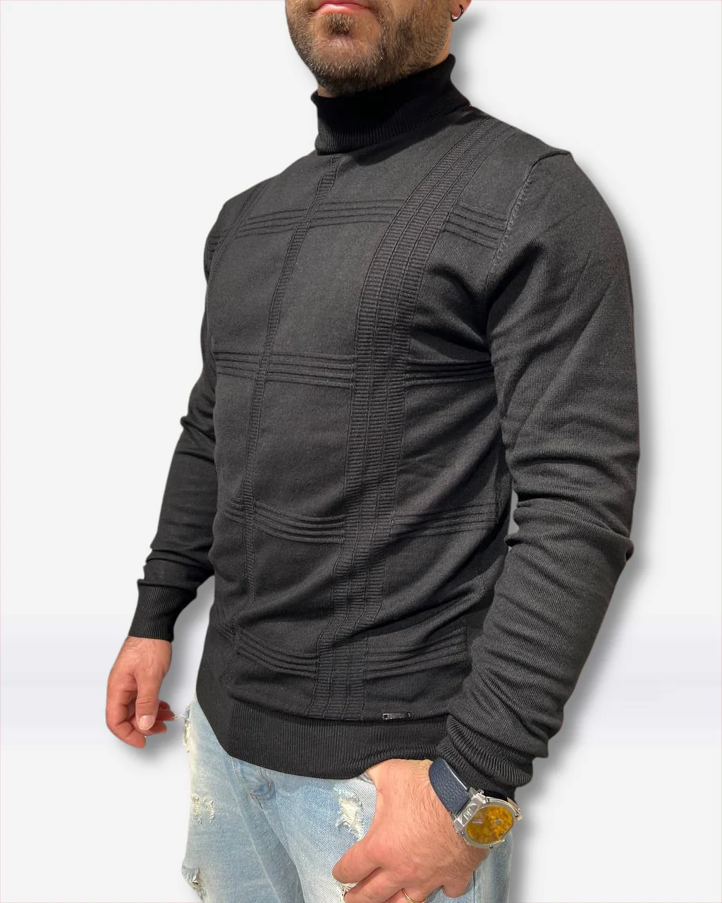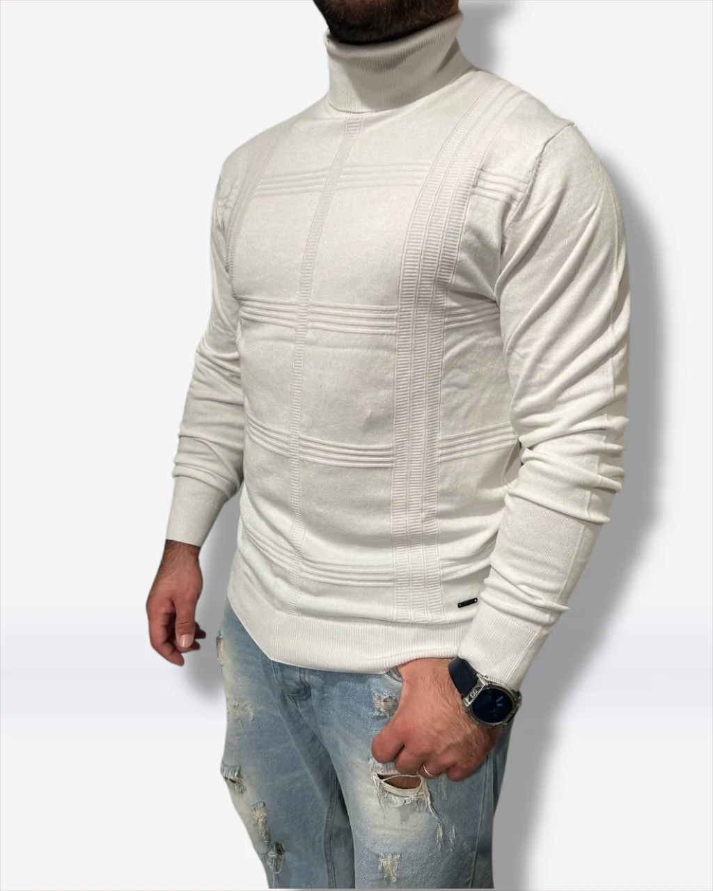 Il maglione Datch รจ tutto ciรฒ di cui hai bisogno per il tuo look autunnale: morbido, caldo e con uno stile unico. Questo maglione dolcevita uomo รจ disponibile in due tonalitร classiche, nero o bianco panna, ed รจ realizzato con una speciale miscela di 70% viscosa e 30% nylon per assicurare comfort e traspirabilitร . Sorprendi con il tuo stile! Codice articolo DM8550