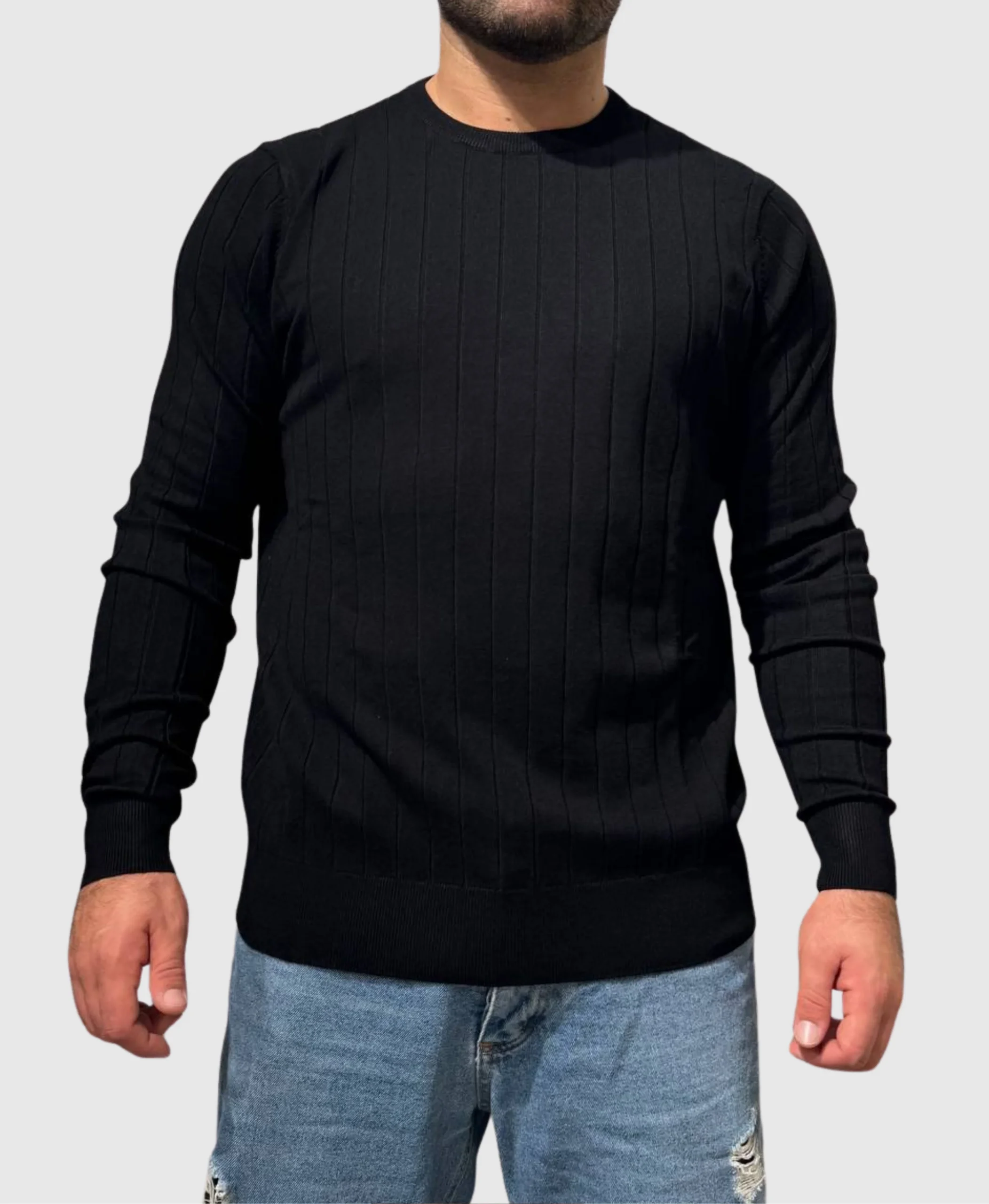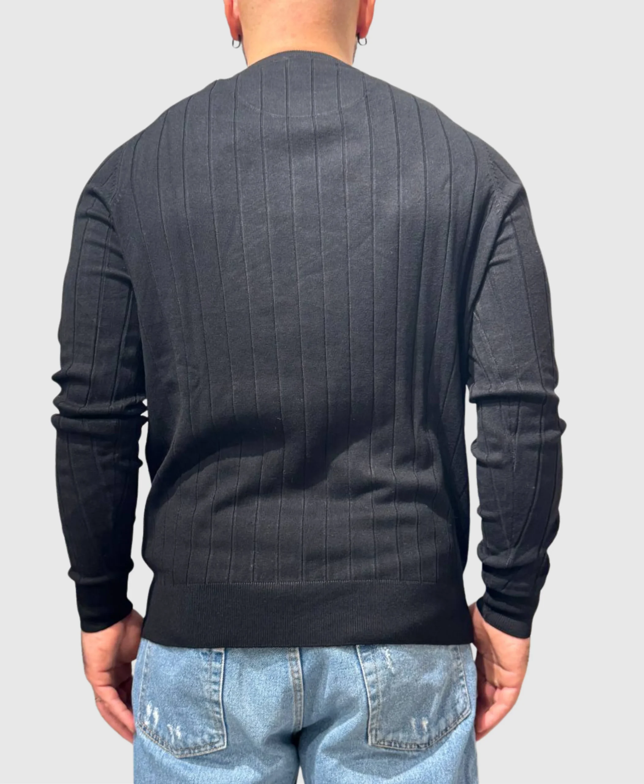 Maglione uomo in viscosa e nylon che sfida la semplicitร  con una trama audace sul davanti. Girocollo classico in nero, perfetto per chi non sceglie compromessi nello stile. Versatile e sofisticato, si adatta a qualsiasi occasione senza rinunciare al carattere. Un capo che trasforma ogni outfit in una dichiarazione di personalitร .