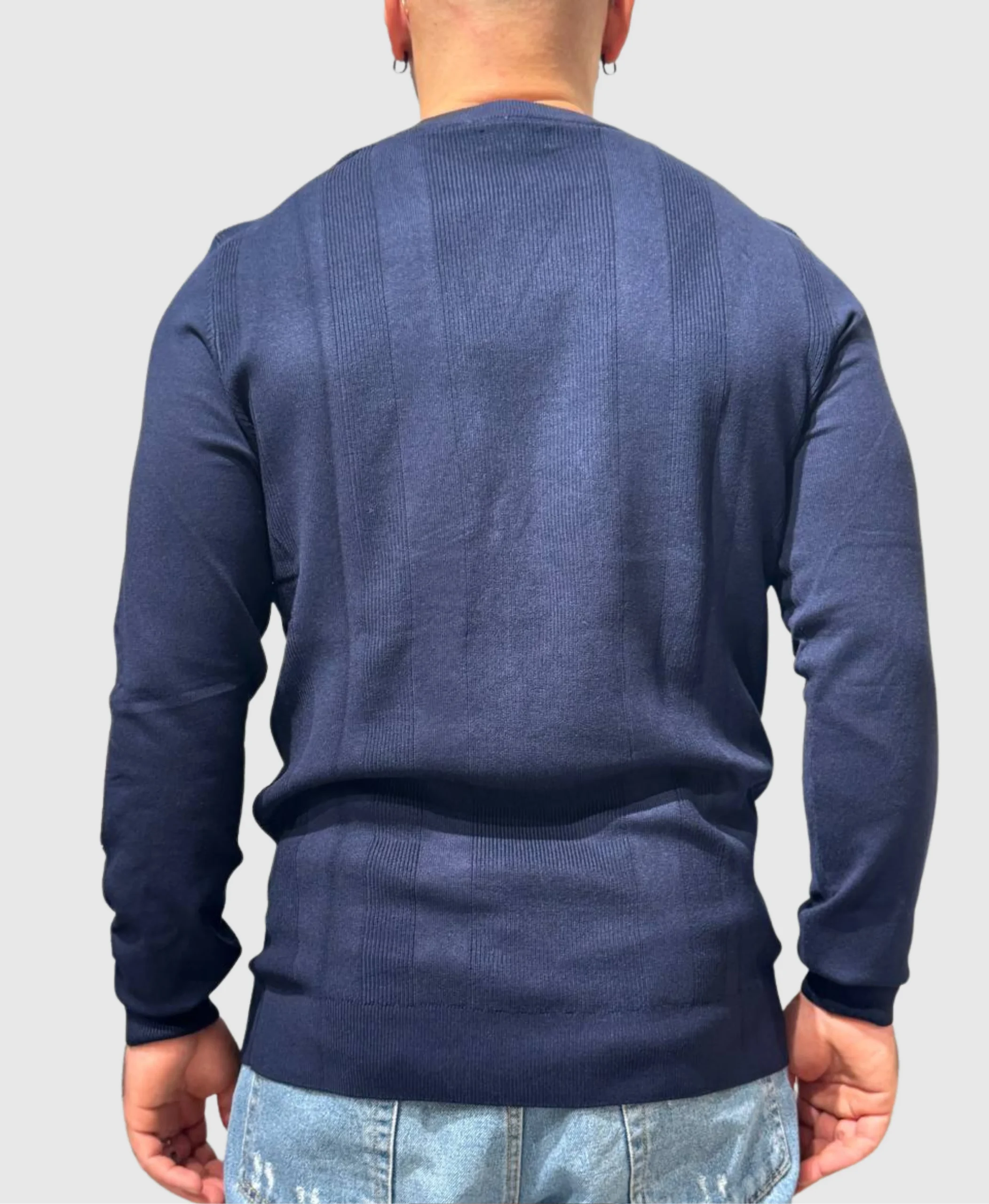 Maglione in viscosa dal taglio essenziale che non scende a compromessi con lo stile. Girocollo classico, trama sottile e raffinata in blu profondo: la scelta perfetta per chi sa che l’eleganza non ha bisogno di urlare. Versatile abbastanza da accompagnarti dal giorno alla sera, audace nella sua semplicitร . Indossalo come base di un look stratificato o da solo per un’affermazione di gusto consapevole.