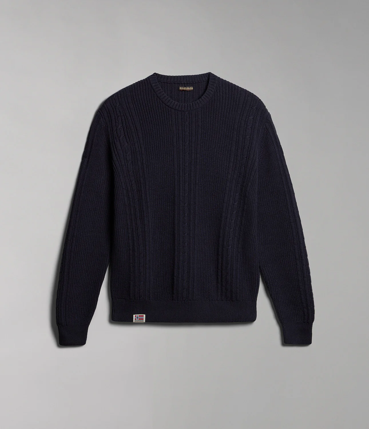 Che ne pensi del look del Maglione Napapijri? Se รจ la tua giusta misura di stile, vieni a sfoggiarla! Realizzato con il 100% cotone, il maglione presenta un color blu intenso, perfetto per creare una nuova esperienza di stile! Un look spassoso e senza sosta tutto per te! Disponibile anche nella versione color panna.