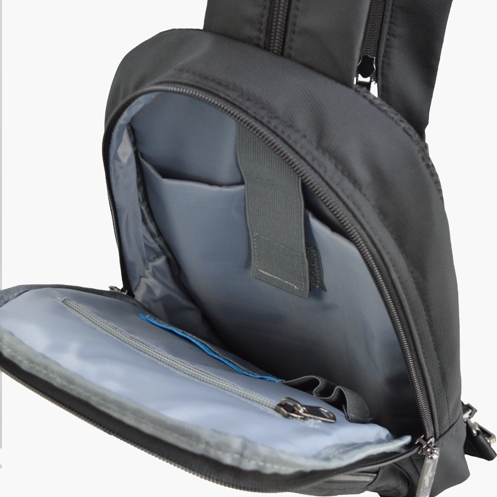 Il monospalla della linea Airspace è realizzato in tessuto tecnico e si caratterizza per la sua eccezionale resistenza e la sua leggerezza.