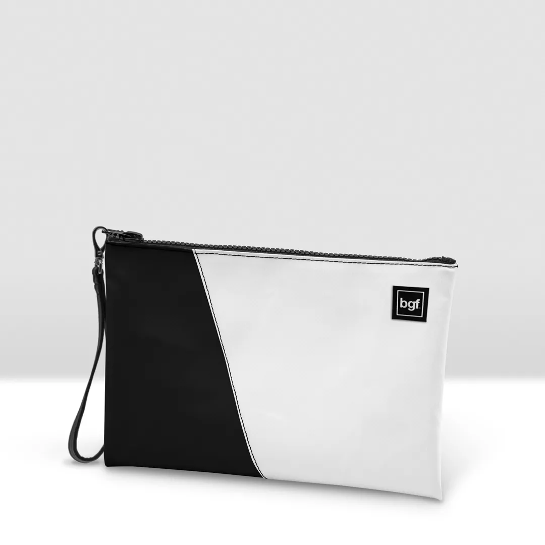 Pochette in banner PVC 560, due colori accoppiati con cucitura a vista.
