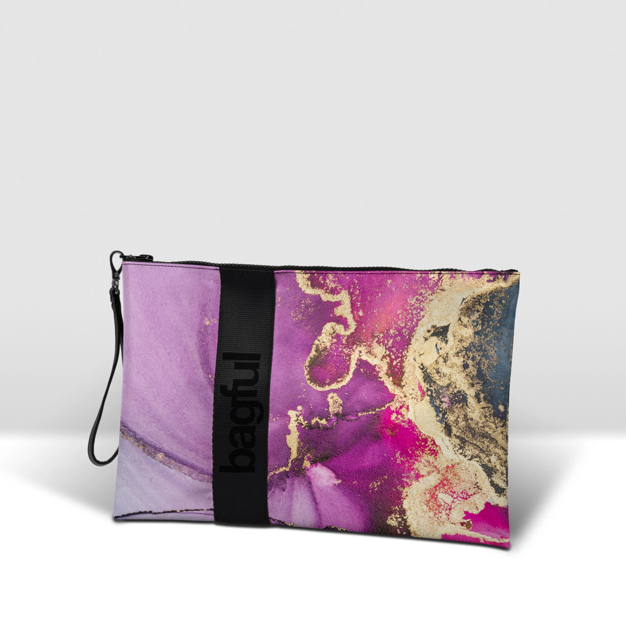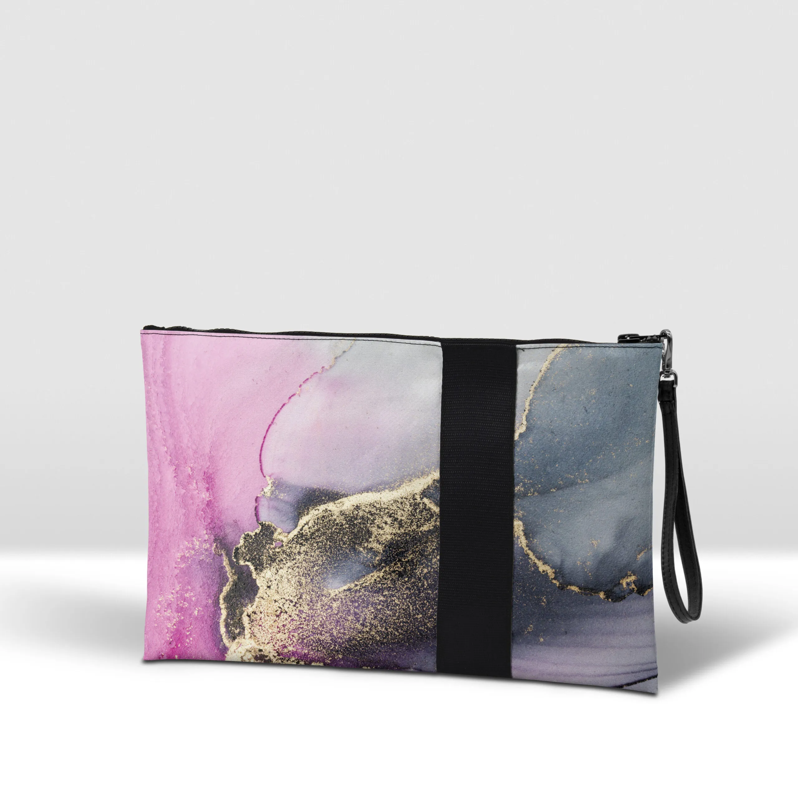 Pochette in banner PVC 560, stampato, con zip pressofusa.