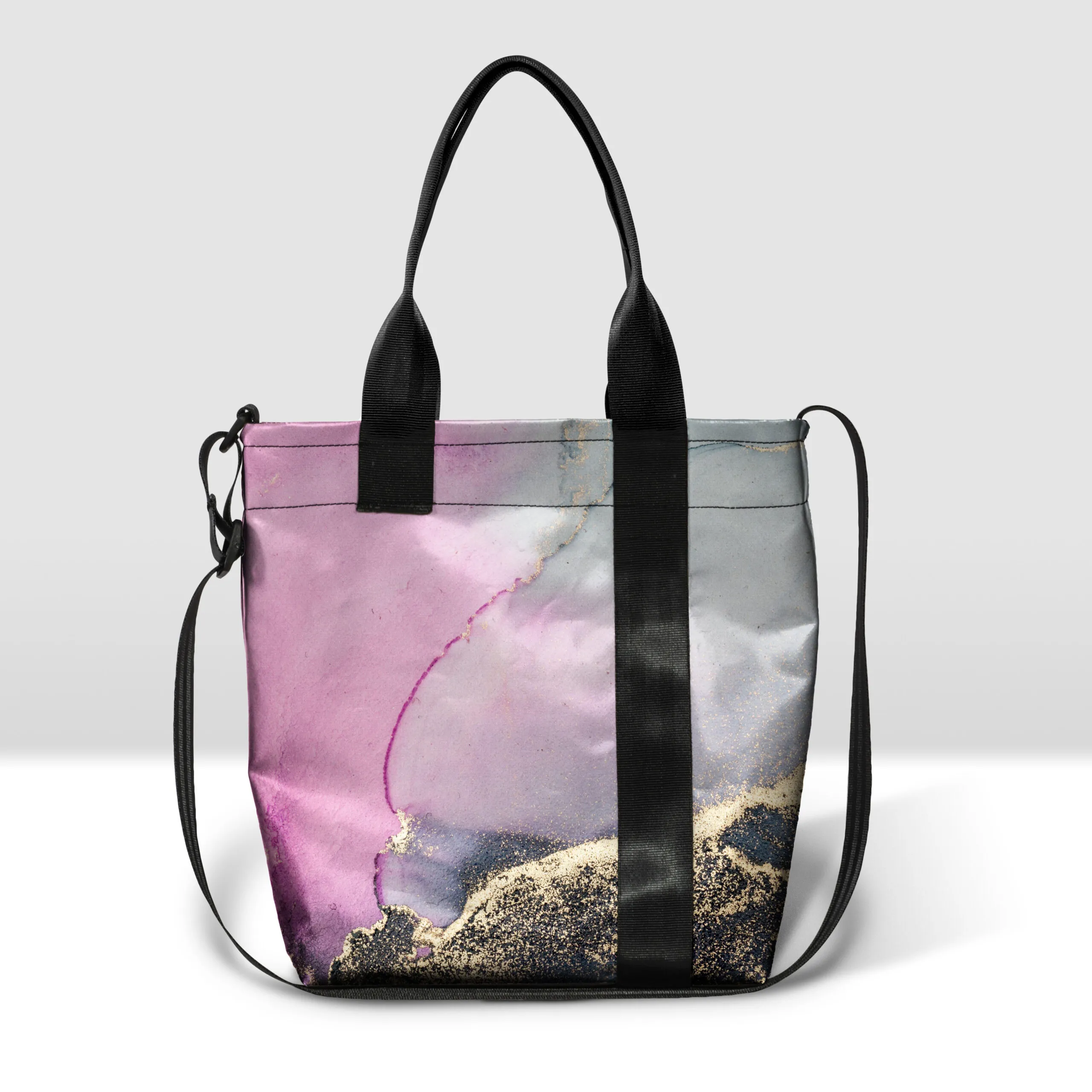 Con possibilità di aggiungere una tracolla e modificare la lunghezza dei manici.