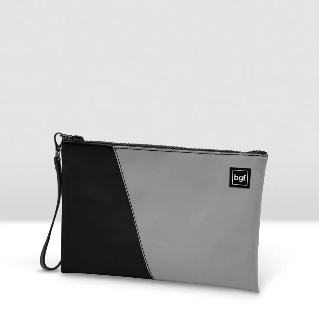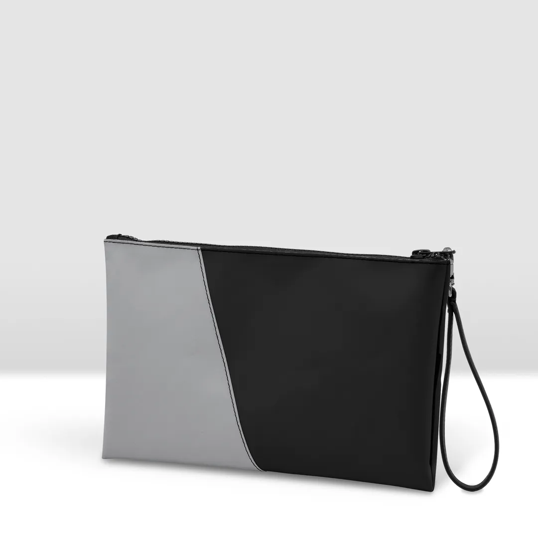 Pochette in banner PVC 560, due colori accoppiati con cucitura a vista.