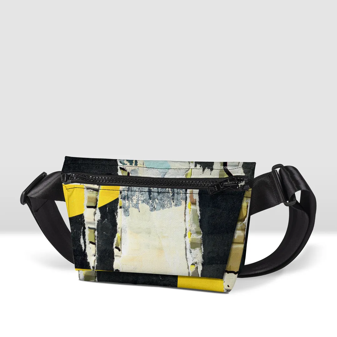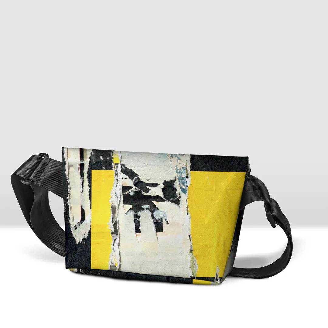 Borsa in banner PVC stampato, con tracolla, zip esterna pressofusa,