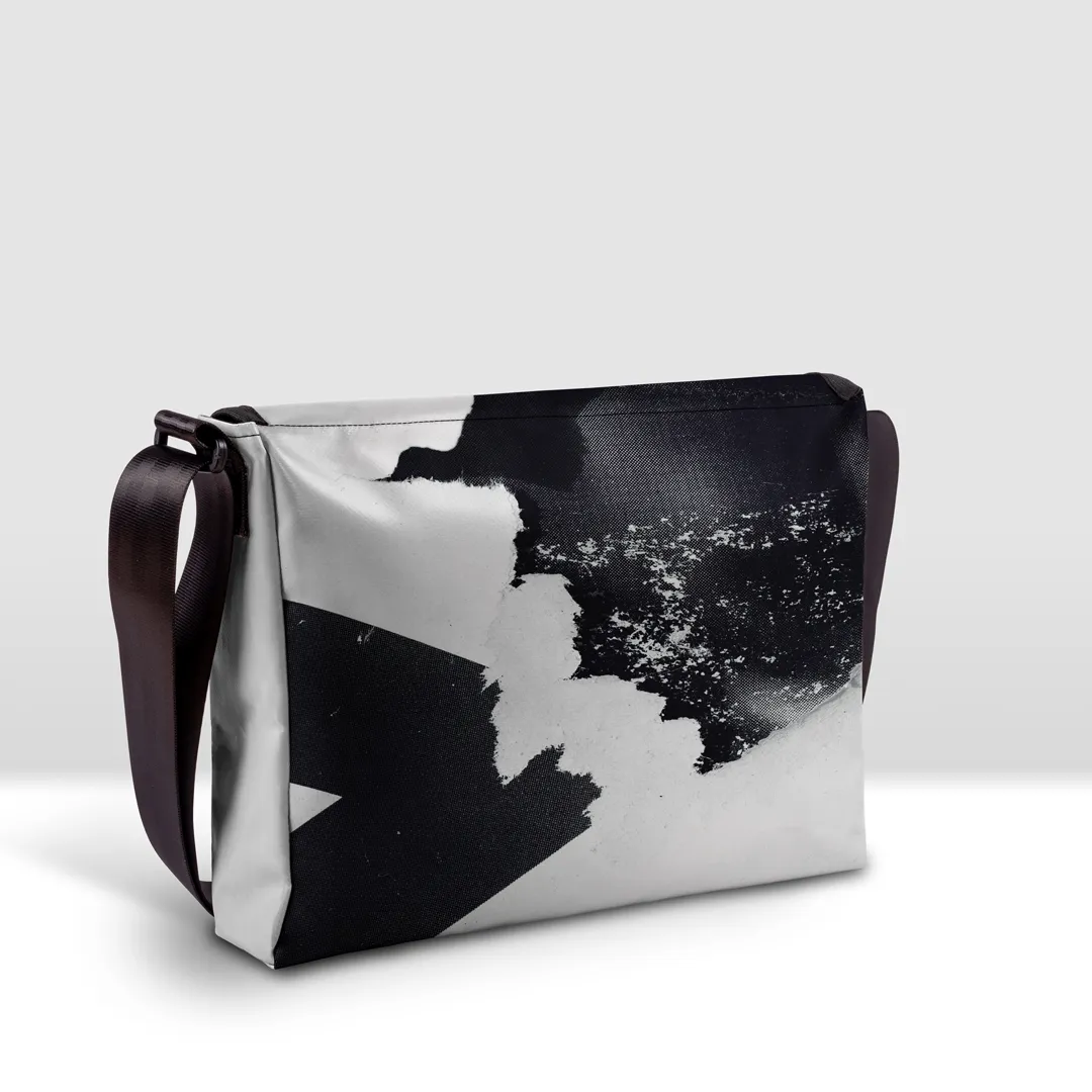 Stampata in banner PVC 560, imbottita, tasca interna e tracolla.