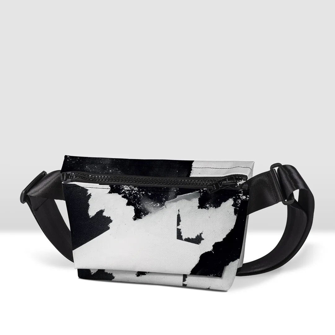 Borsa in banner PVC stampato, con tracolla, zip esterna pressofusa,