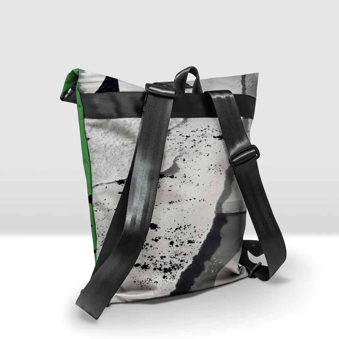 Stampato in banner PVC 560, tasca con zip pressofusa e imbottitura nello schienale e nel fondo.