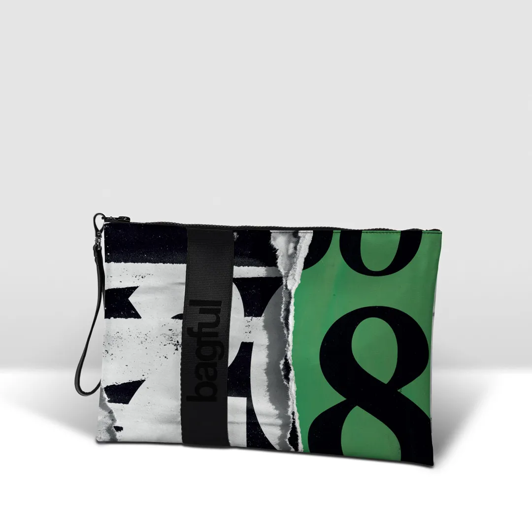 Pochette in banner PVC 560, stampato, con zip pressofusa.