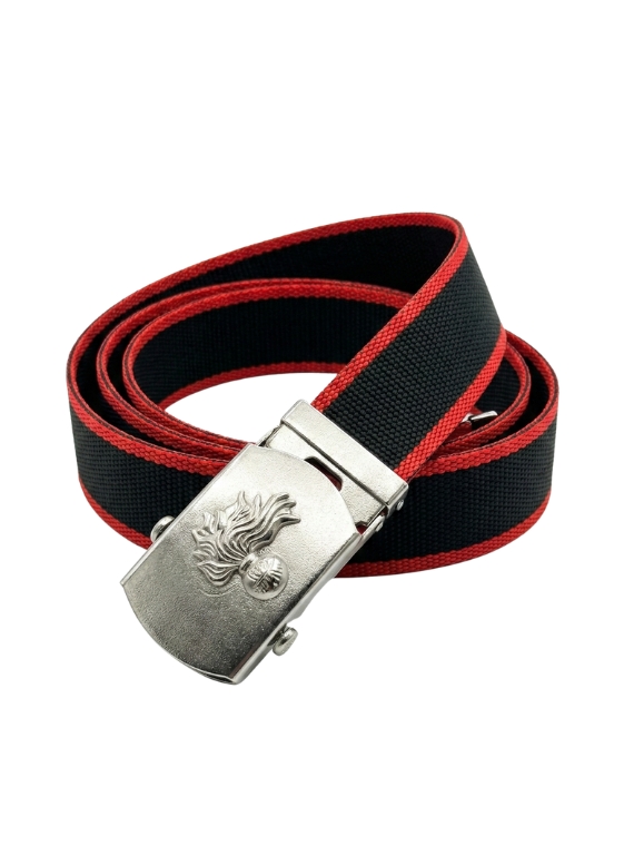 La fibbia metallica è impreziosita dalla fiamma simbolo dell’Arma, elemento distintivo che conferisce autorevolezza e riconoscibilità.