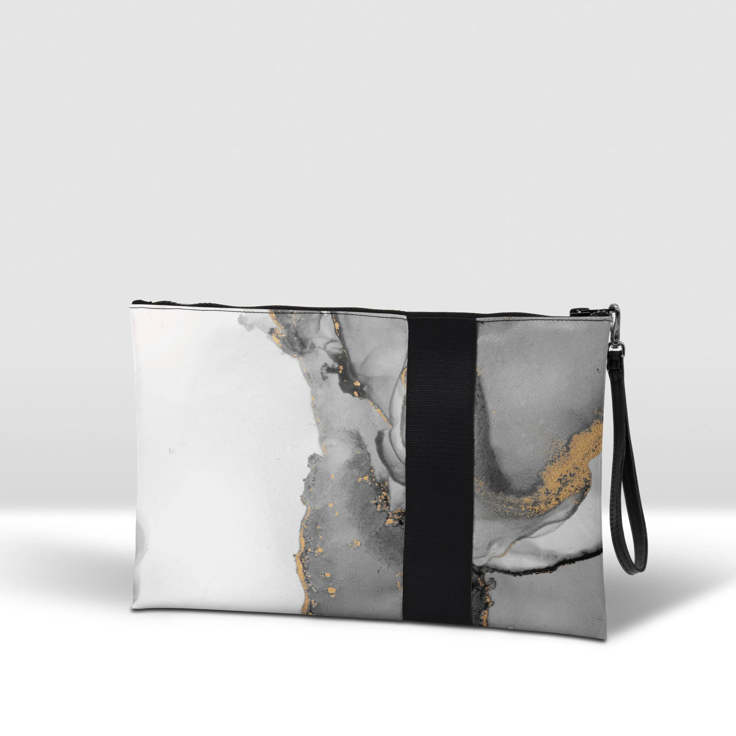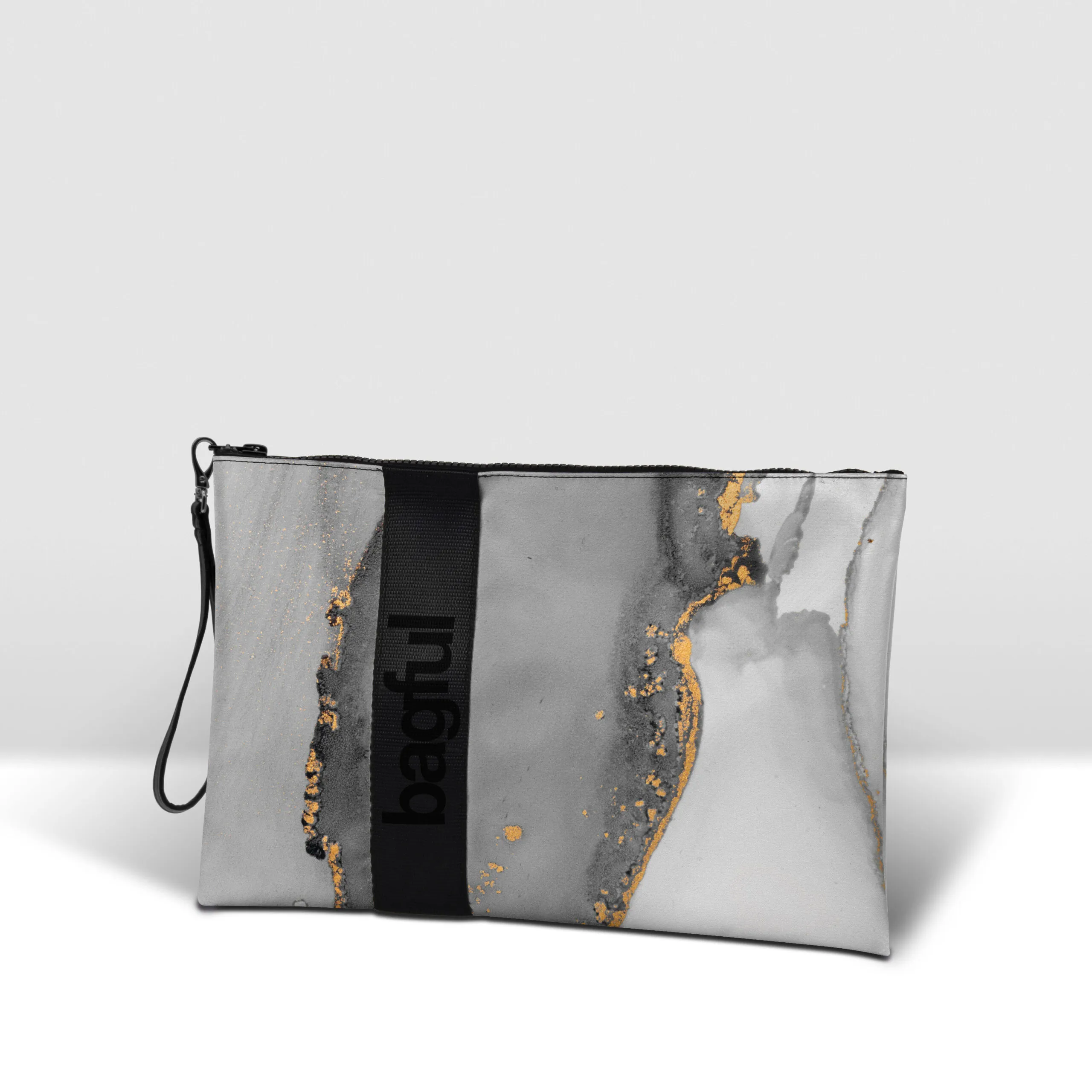 Pochette in banner PVC 560, stampato, con zip pressofusa.