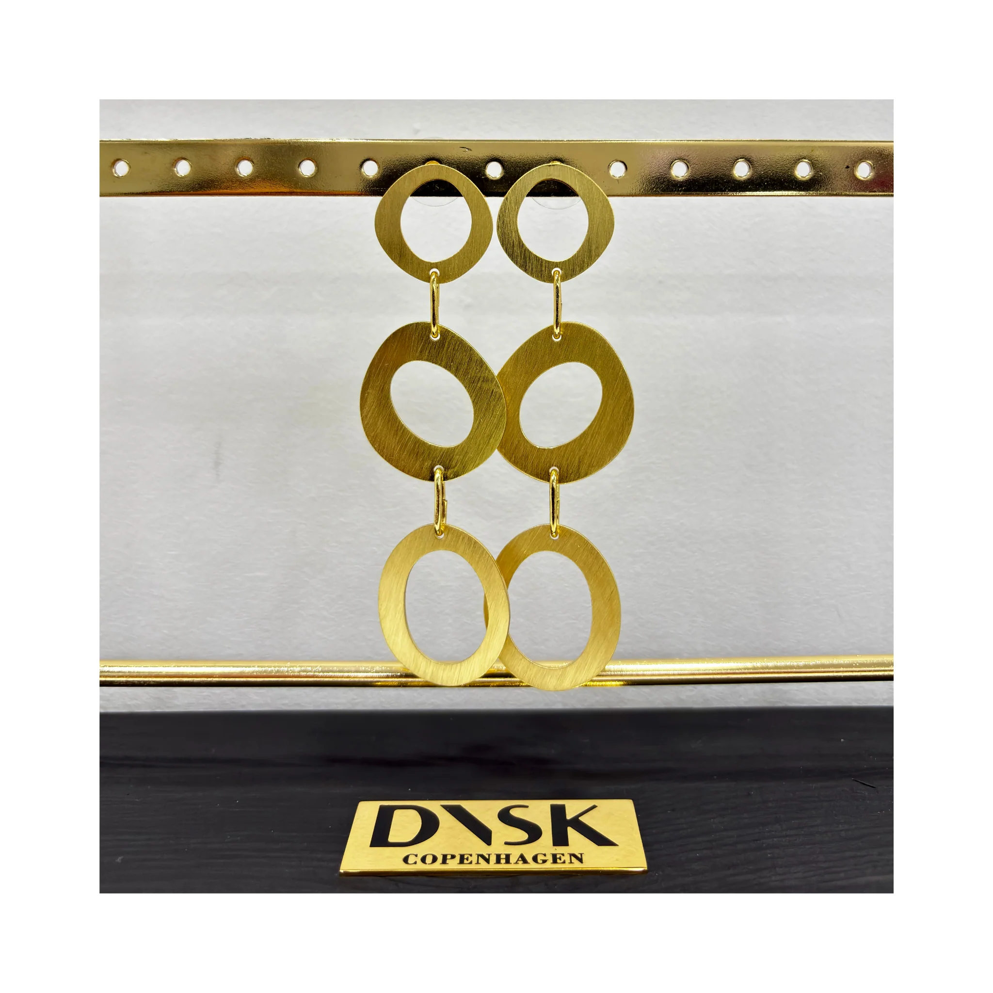 Orecchini Dansk Copenhagen realizzati in nichel-free metallo color oro satinato, questi orecchini di 9 centimetri di lunghezza sono perfetti per completare il tuo look audace e senza limiti.