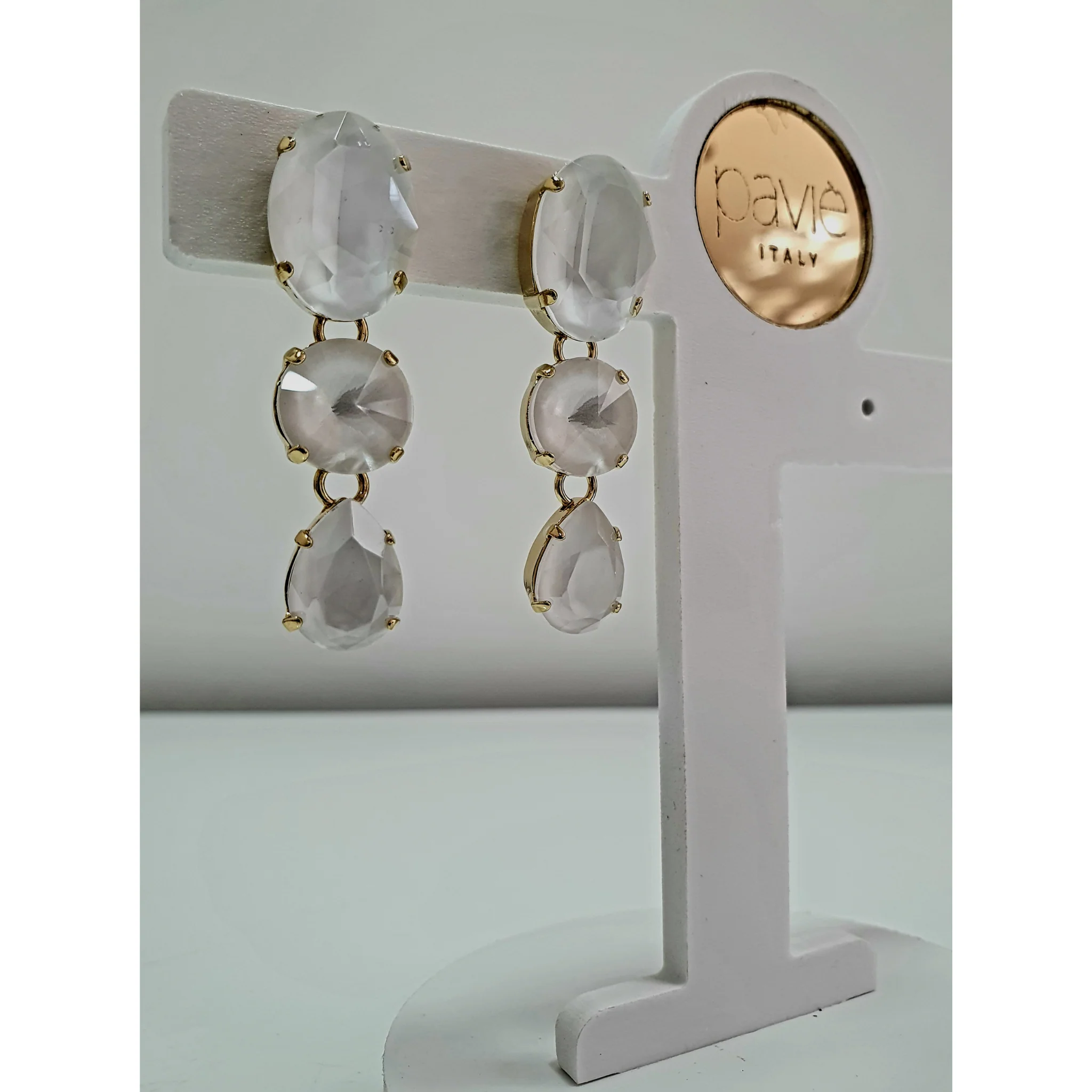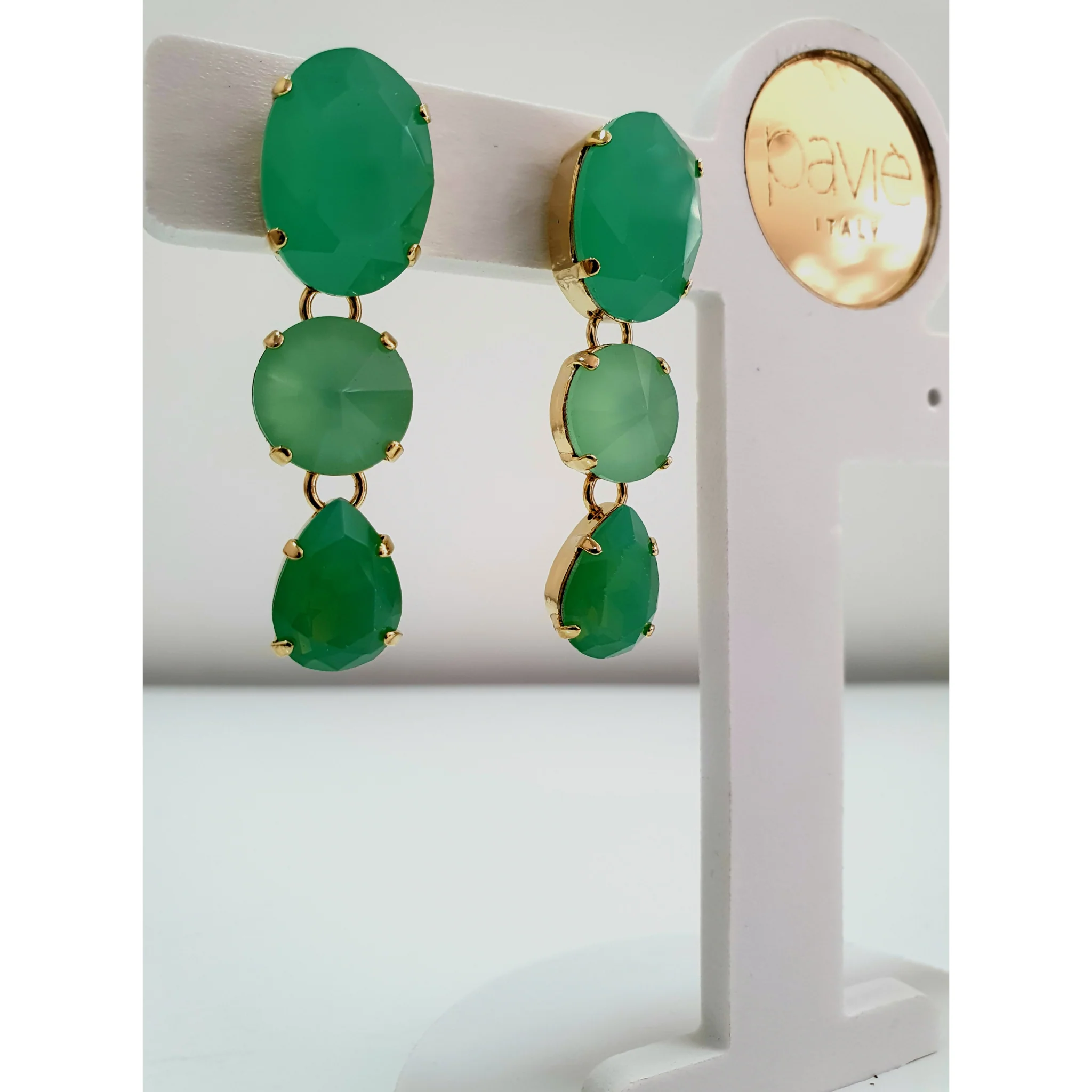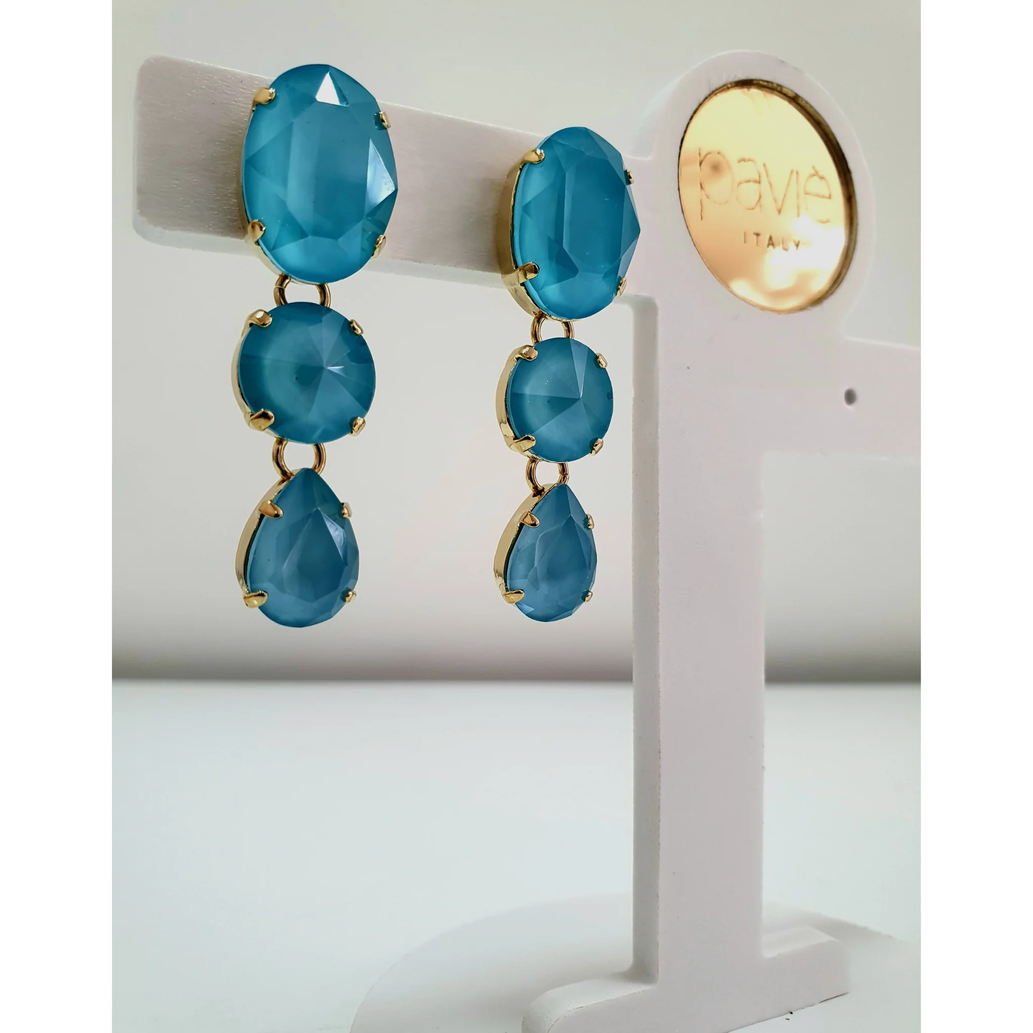 Orecchini pendenti Paviè. Composizione: cristallo, metallo ipoallergenico. Nichel free EN 1811/2011 Made in Italy