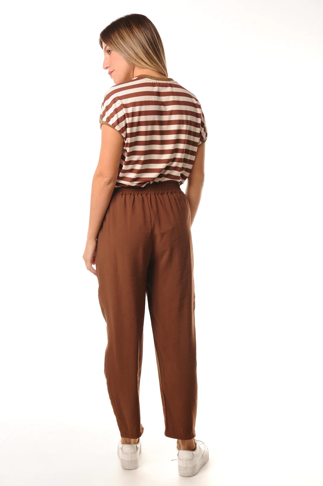Questo pantalone Lokita presenta una morbidezza che ti farร sentire come se non stessi indossando nulla. Il colore terra รจ versatile e facile da abbinare con tutti i tuoi top preferiti. Con la coulisse, potrai regolare la vestibilitร per una comoditร senza pari. Inoltre, il tessuto composto all’ 89% di viscosa e 11% di poliestere lo rende pratico e resistente. Prepara i tuoi outfit con questo pantalone!