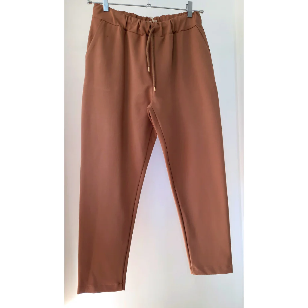 Pantaloni Anima Gemella a vita alta con tasche laterali e regolabile in vita con lacci.