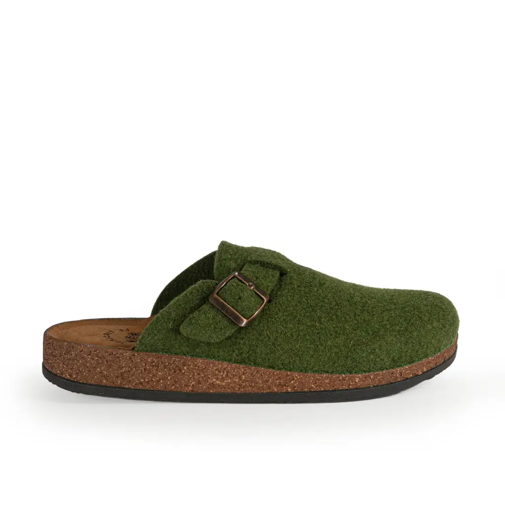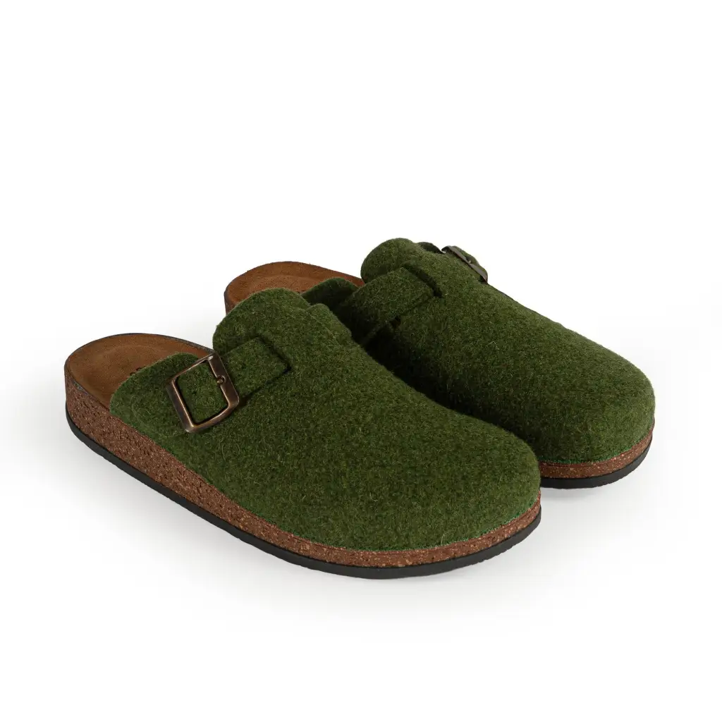 Pantofola in feltro di vera lana della linea Le Tirolesi. Questa pantofola con fibbia regolabile sul collo del piede è stata pensata e realizzata per garantire comfort e comodità d’indosso. Con il suo feltro di lana al 70%, garantisce comfort naturale e traspirabilità superiore. La suola antishock assorbe gli urti, proteggendo i tuoi piedi durante le lunghe giornate. La fibbia regolabile sulla tomaia si adatta perfettamente al tuo piede, offrendo una vestibilità personalizzata e sicura. Qualità Made in Italy che unisce tradizione e benessere quotidiano.