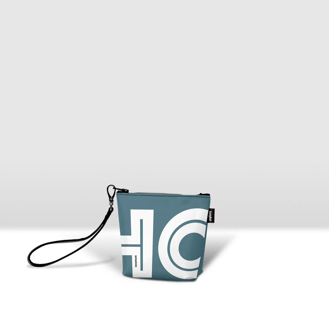 Mini pochette in banner PVC 560, stampato, con zip pressofusa.