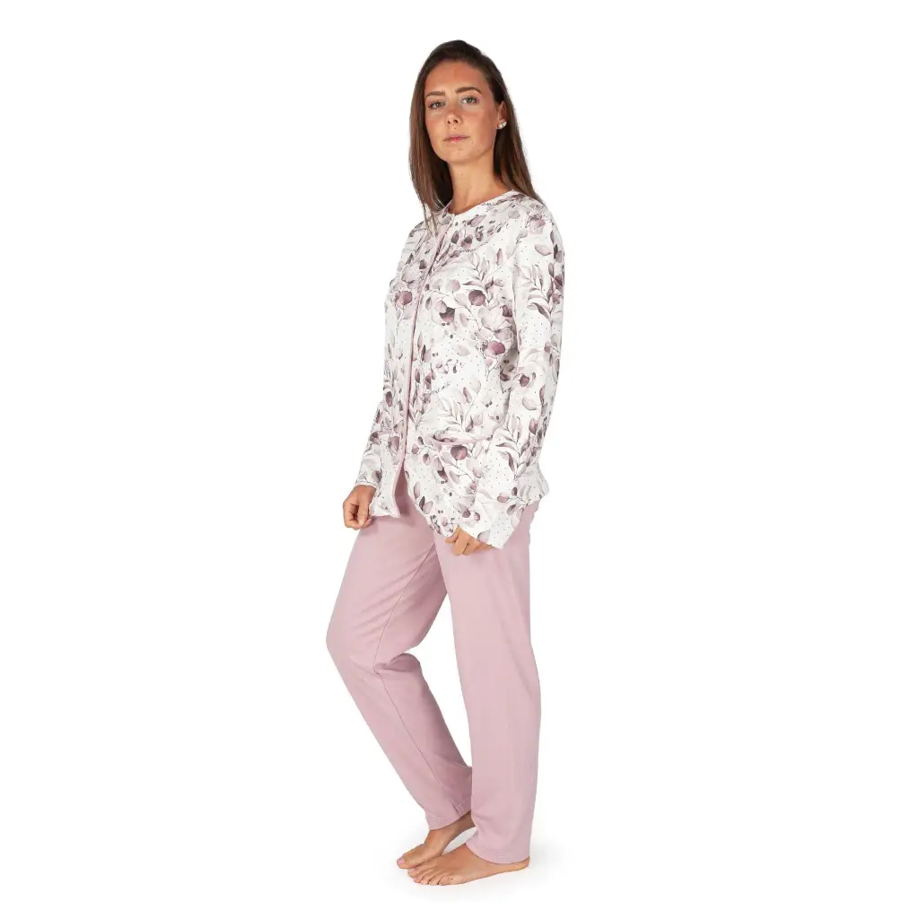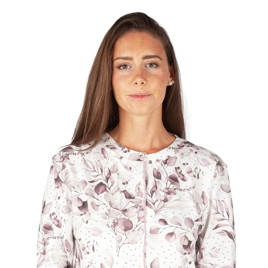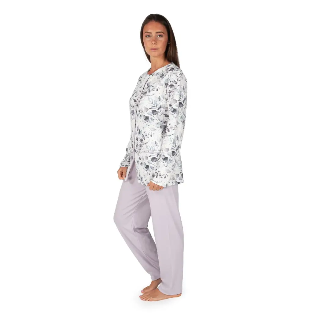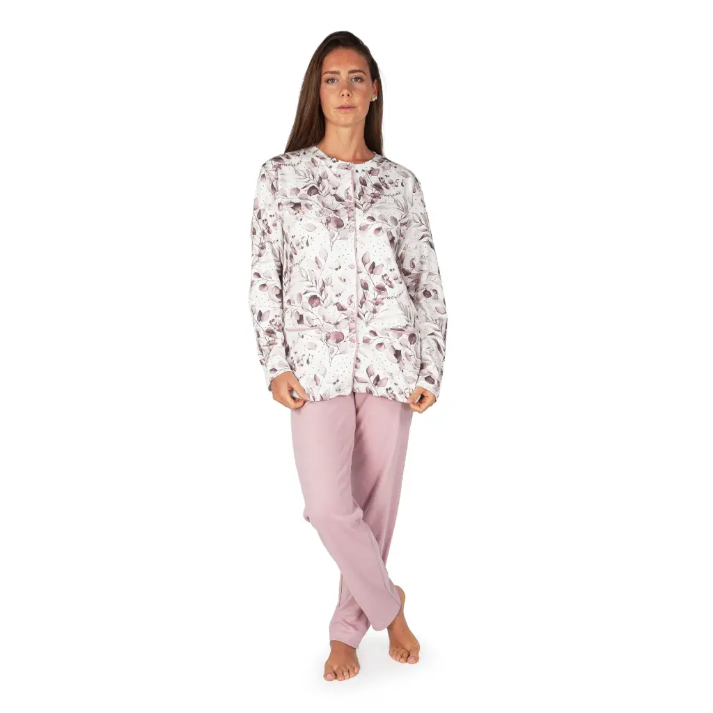 Pigiama lungo donna aperto dritto in fantasia in caldo cotone interlock di MariottiLab. Tutte le collezioni di MariottiLab sono interamente disegnate e realizzate in Italia tramite lo studio e la ricerca dei modelli, degli stili e dei tessuti utilizzati. Questo pigiama, grazie alla giacca con apertura totale frontale, risulta molto comodo e pratico all’indosso. Ha un design classico grazie alla fantasia floreale della giacca, che viene abbinata alla tinta unita del pantalone dritto. Il tessuto in caldo cotone interlock è morbido e caldo, perfetto da indossare durante le fredde notti della stagione autunnale e invernale. Grazie alla struttura del modello, questo pigiama si addice anche ad essere utilizzato per una eventuale degenza ospedaliera.