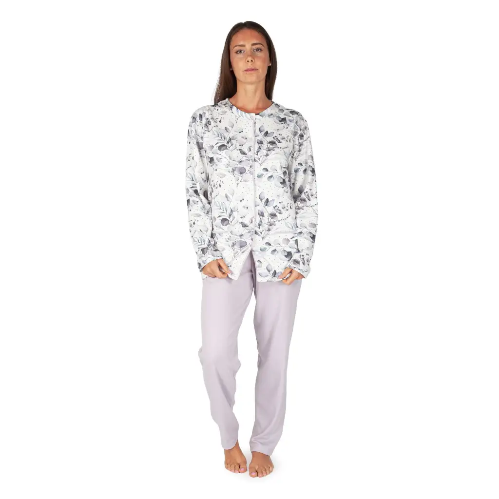 Pigiama aperto donna dritto in fantasia in caldo cotone interlock | mariottilab