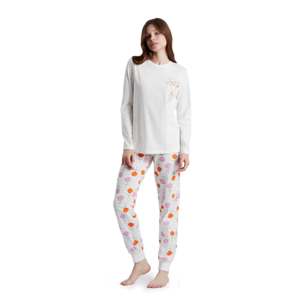 Pigiama donna a paricollo a manica lunga in cotone leggero Multicolor | Happy People