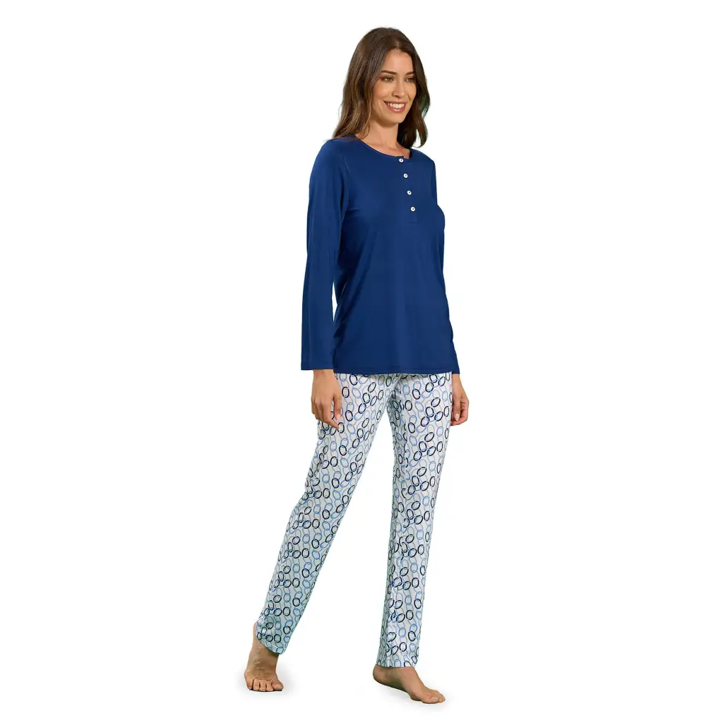 Pigiama donna a serafino a manica lunga in viscosa Cannes | Linclalor