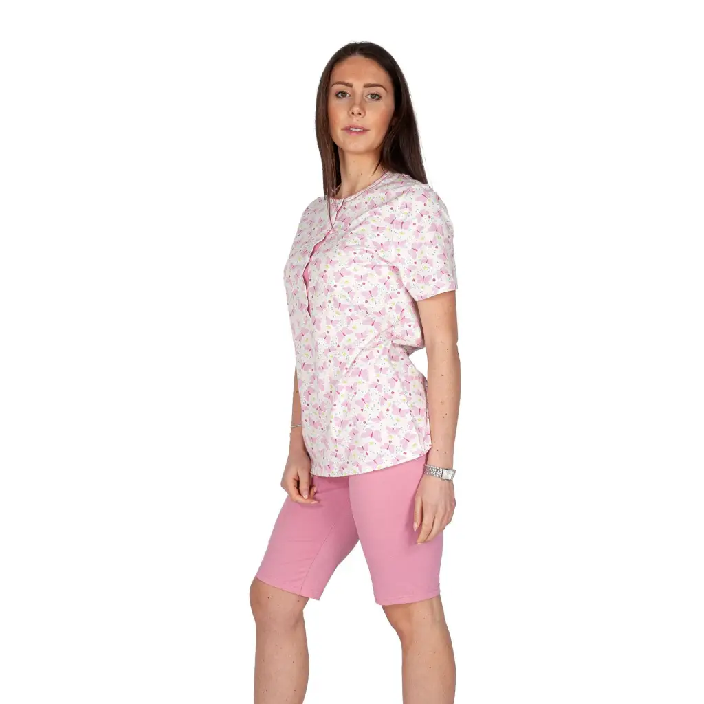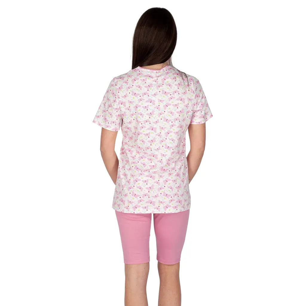 Pigiama donna a serafino corto in puro cotone Farfalle | Linclalor