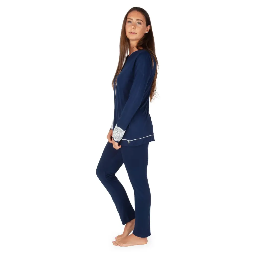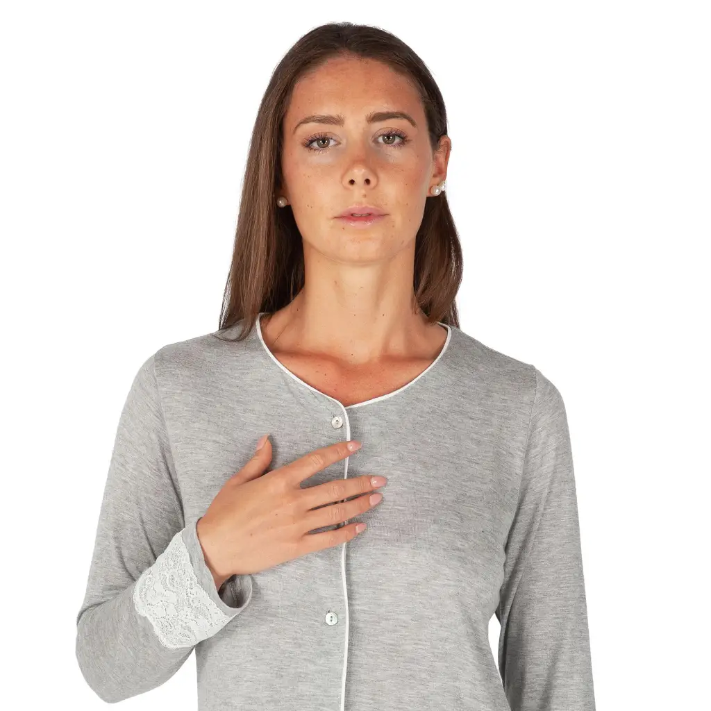 Pigiama donna aperto davanti a mancia lunga in vis