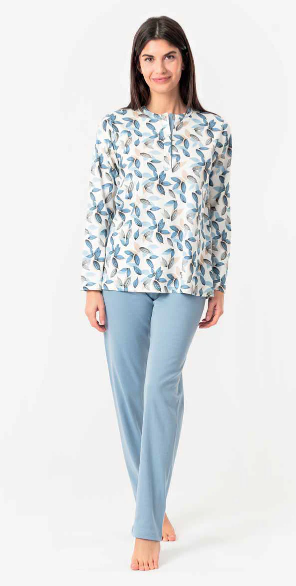 pigiama lungo da donna, colletto a serafino e maglia a fantasia floreale