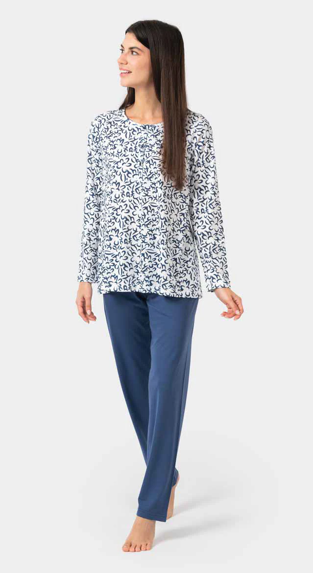Pigiama donna leggero di Zero pigiamore, un pigiama morbido con scollo a girocollo e pantalone lungo morbido. COD. ZERO4306 BLU