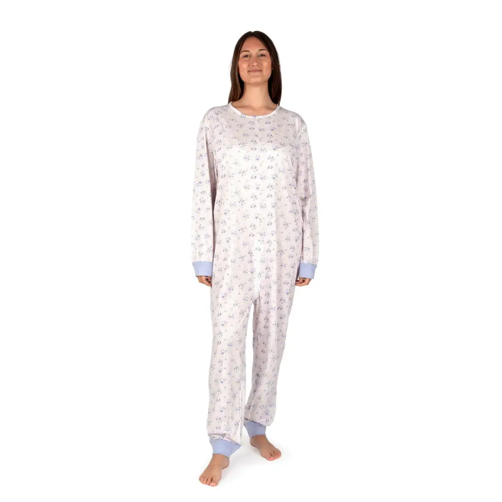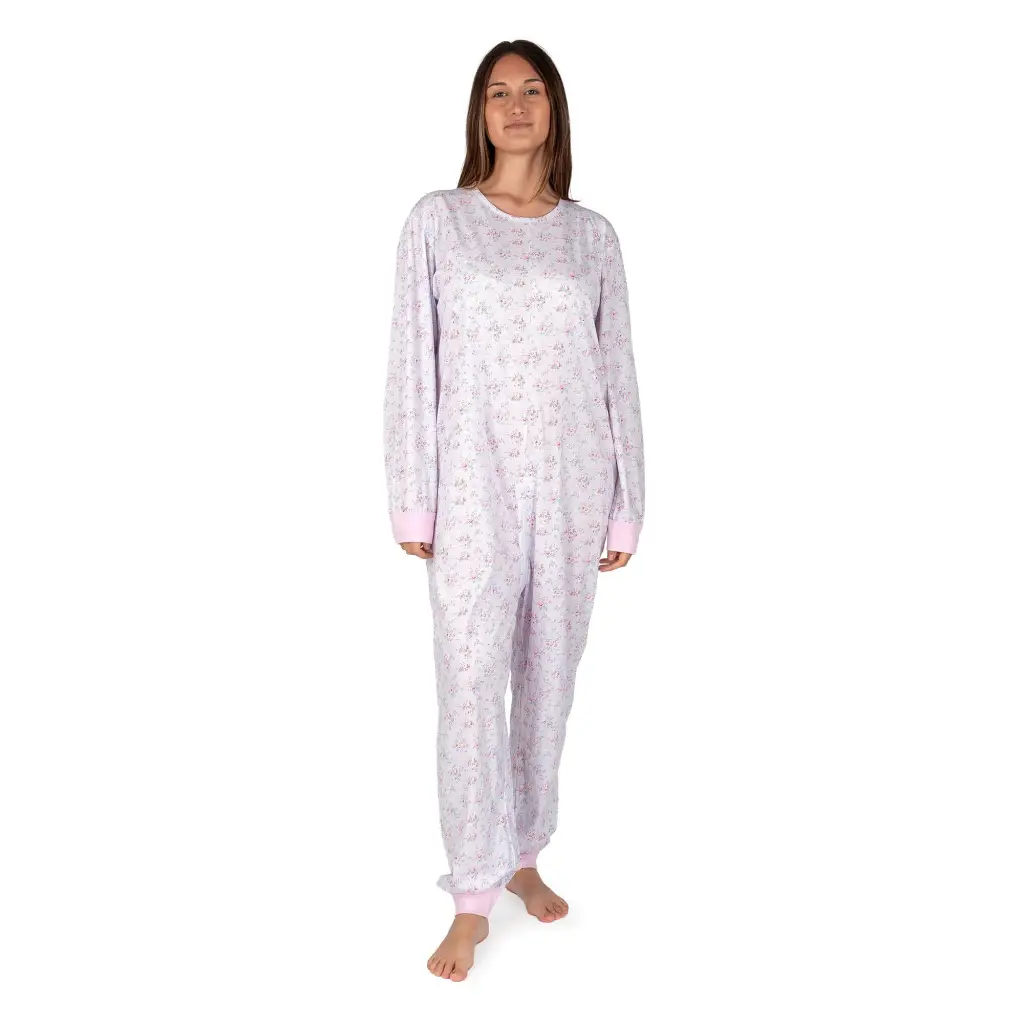 Pigiama tutone intero con cerniera a fantasia in puro cotone leggero linea Sanity