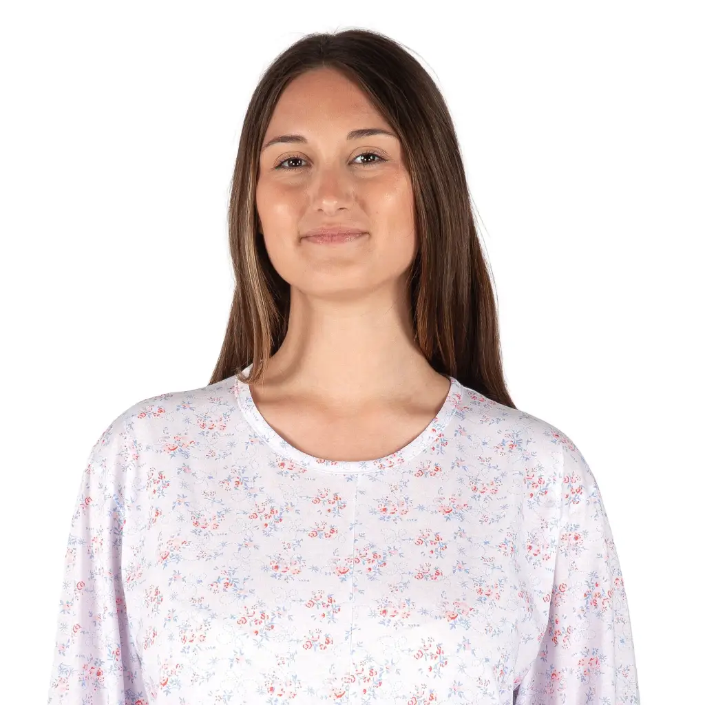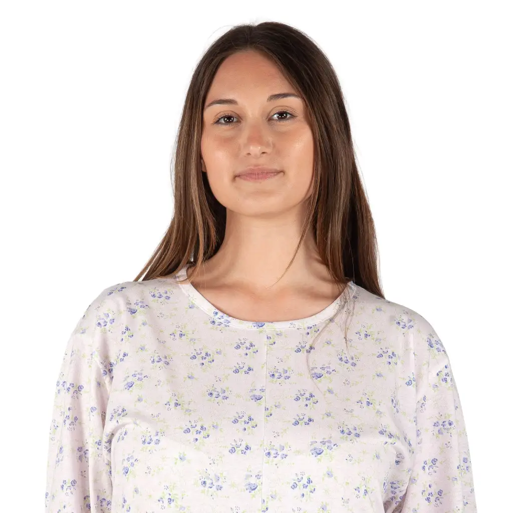 CAMICIA DA NOTTE A SERAFINO CON SPRONE A MANICA LUNGA IN FANTASIA FIORE IN CALDO COTONE INTERLOCK | LINCLALOR