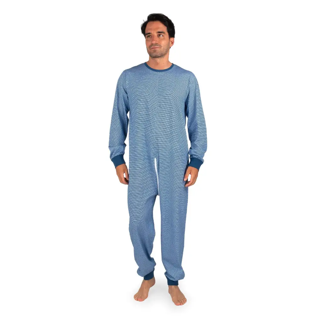 Tutone intero con cerniera sul retro in puro cotone leggero della linea Sanity. Questo particolare capo è nato dall’esigenza di avere un prodotto come uno specifico pigiama sanitario che spesso viene utilizzato per degenti che necessitano di contenzioni. I polsi sono rifiniti con polsini in cotone elasticizzato molto morbido e confortevole. La cerniera sul retro permette un’apertura dalle scapole fino all’ombelico, studiata per assistere il paziente senza doverlo spogliare completamente. Il tutone sanitario è interamente Made in Italy e realizzato con materiali naturali e ipoallergenici adatti anche ad un uso prolungato e a lavaggi frequenti. Il tutone è unisex, adatto sia al’uomo che alla donna. Tessuto certificato Oeko-Tex e sottoposto a test epicutanei per attestare l assenza di sostanze irritanti per la pelle.