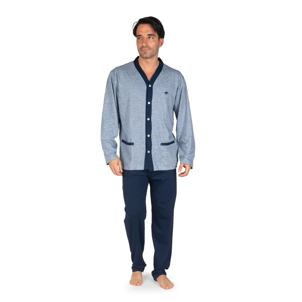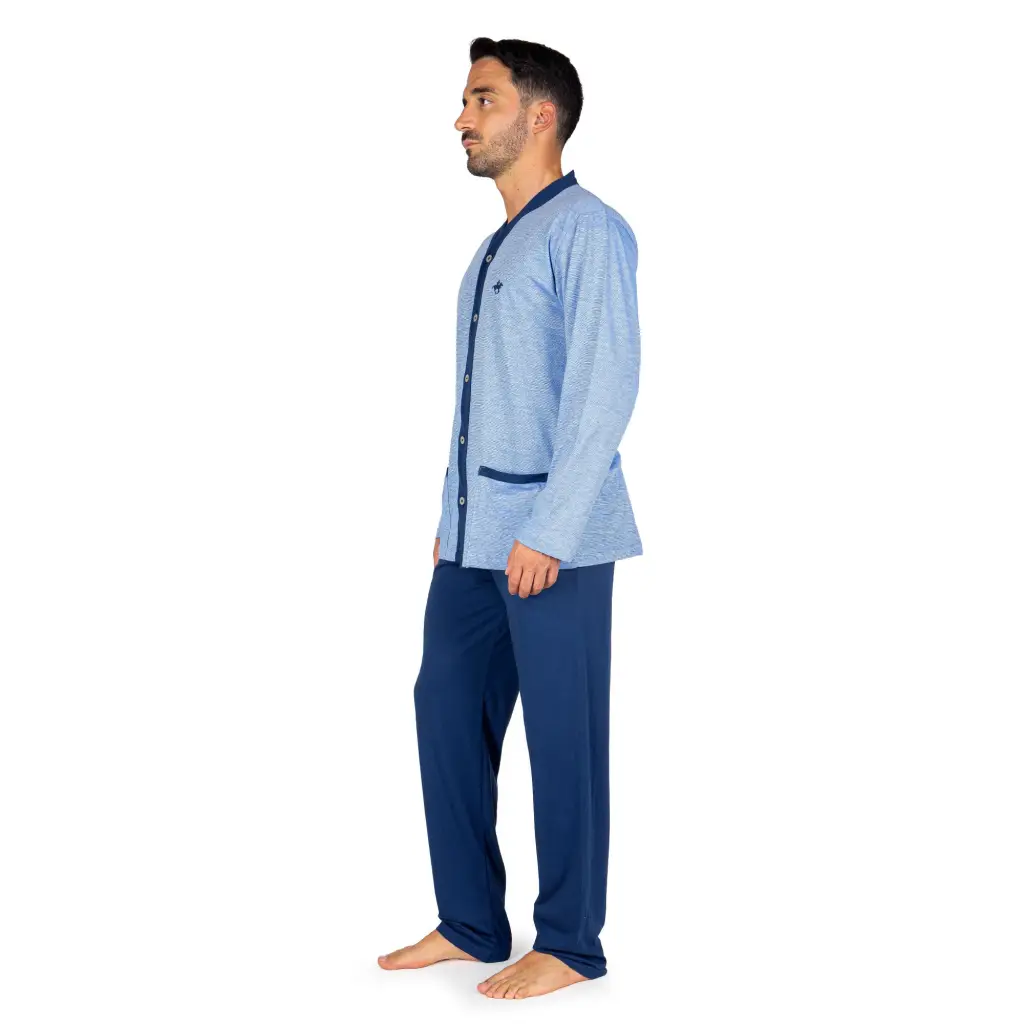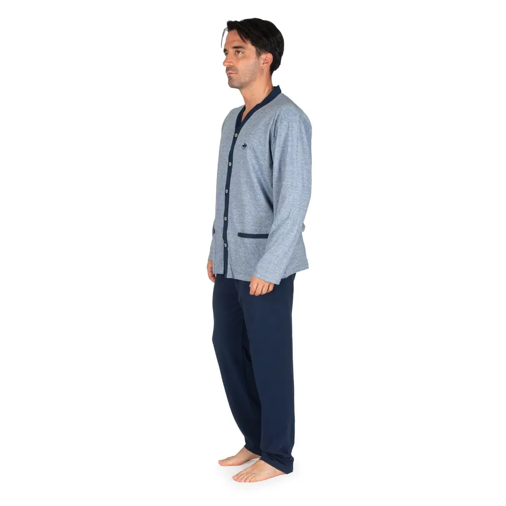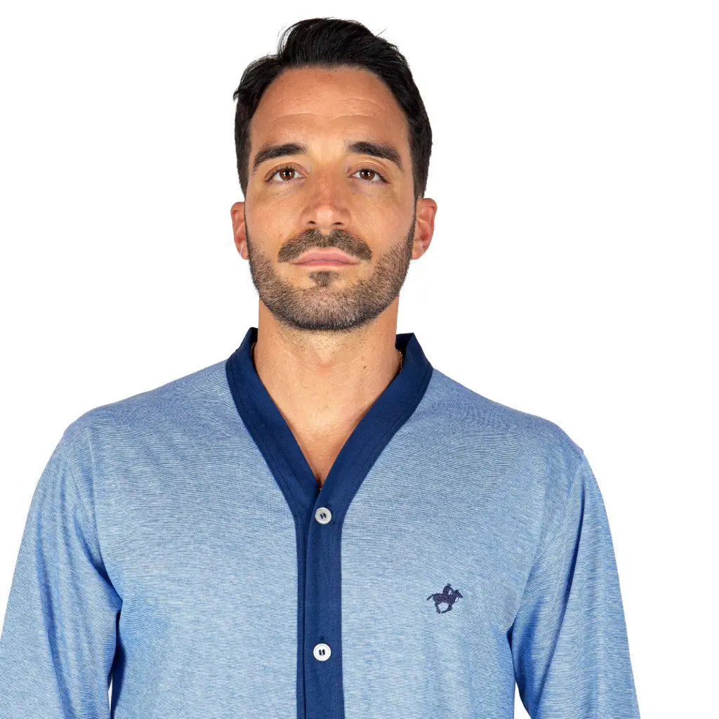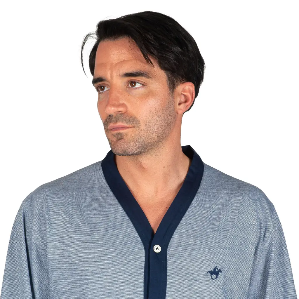 Pigiama uomo a manica lunga aperto davanti in cotone leggero tintai in filo in fantasia Millerighe | Marioti Lab