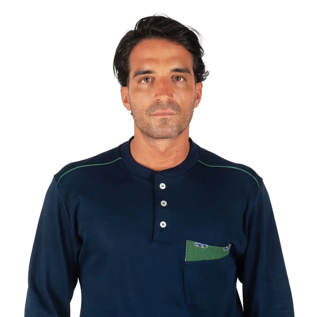 Pigiama uomo a serafino a manica lunga con polsino in caldo cotone | Mariotti Lab