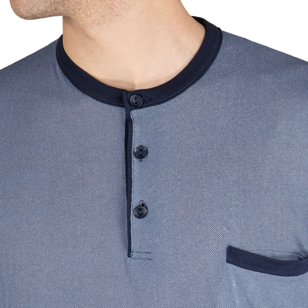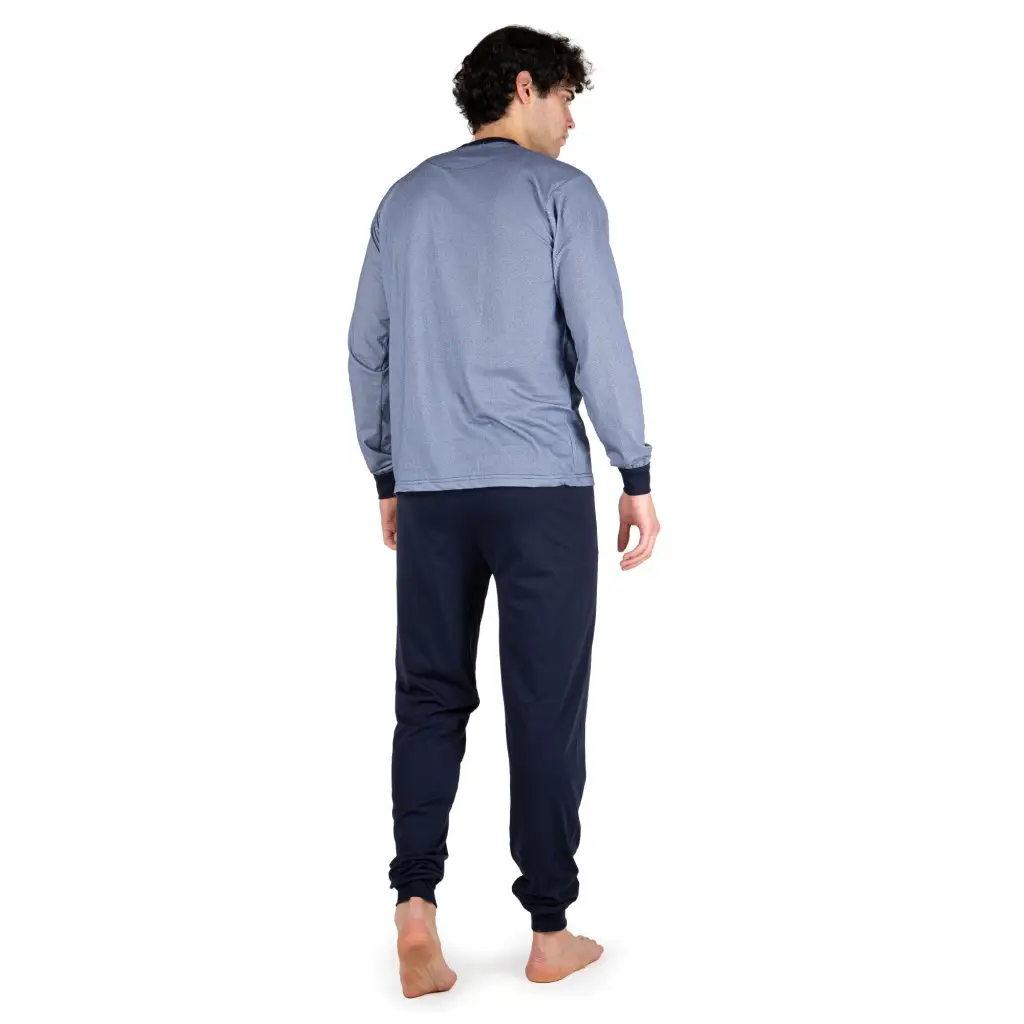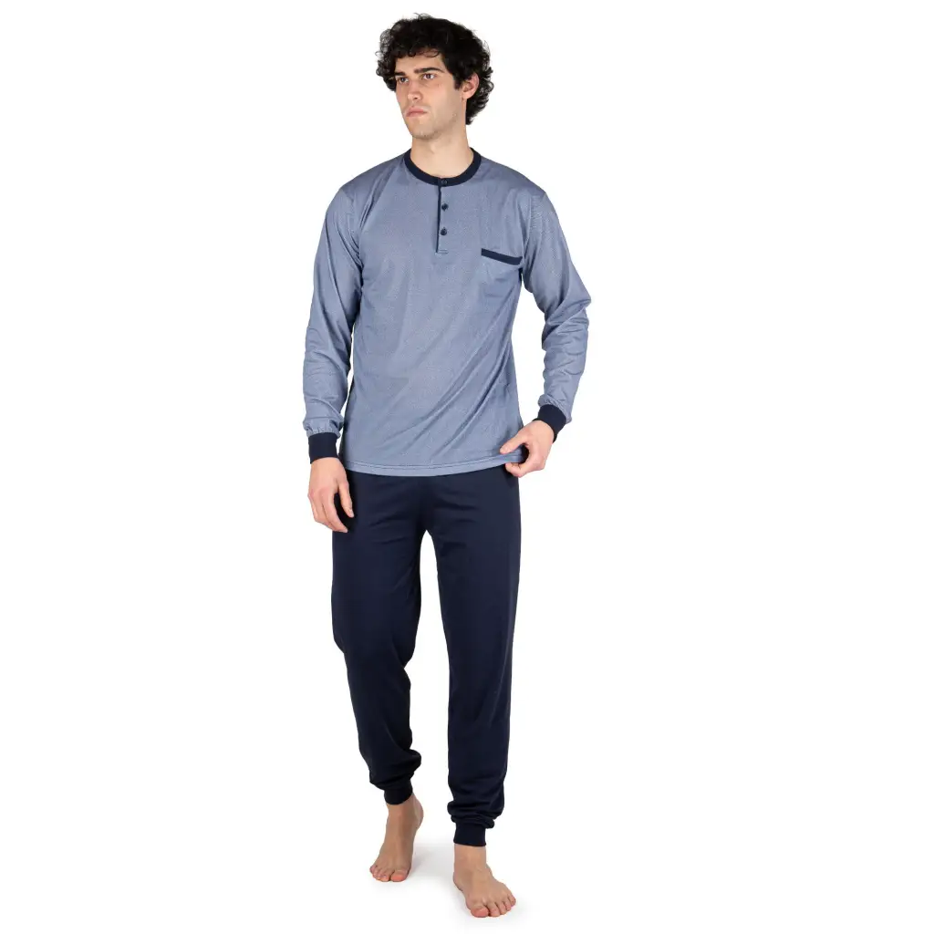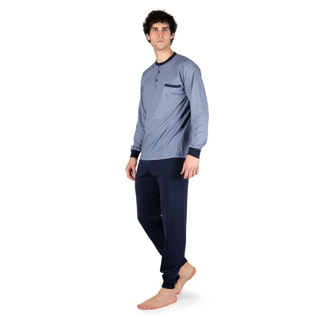 Pigiama uomo a serafino a manica lunga in cotone leggero con polsini | Mariotti Lab