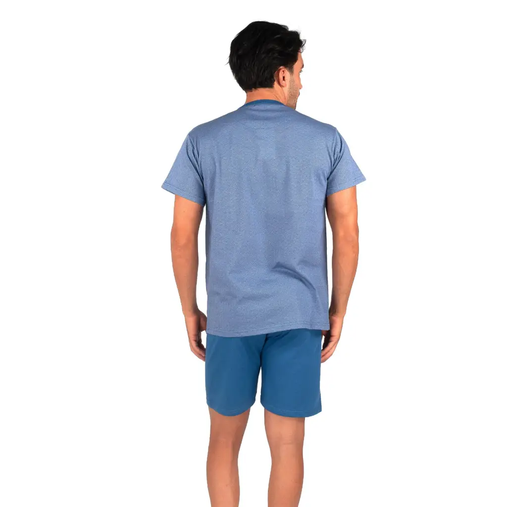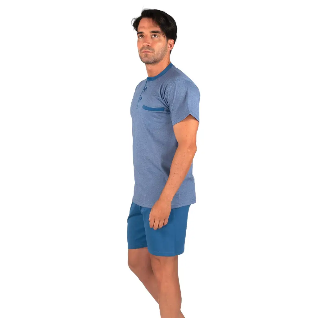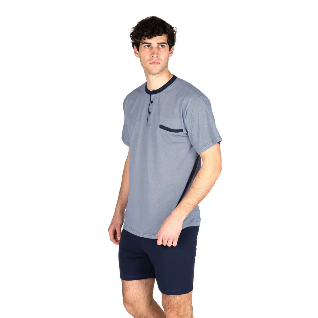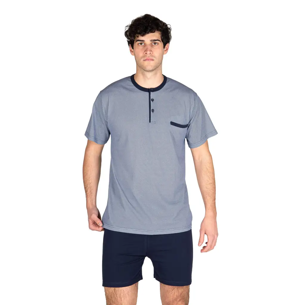 Pigiama uomo a serafino corto con pantaloncino bermuda in cotone leggero | Mariotti Lab