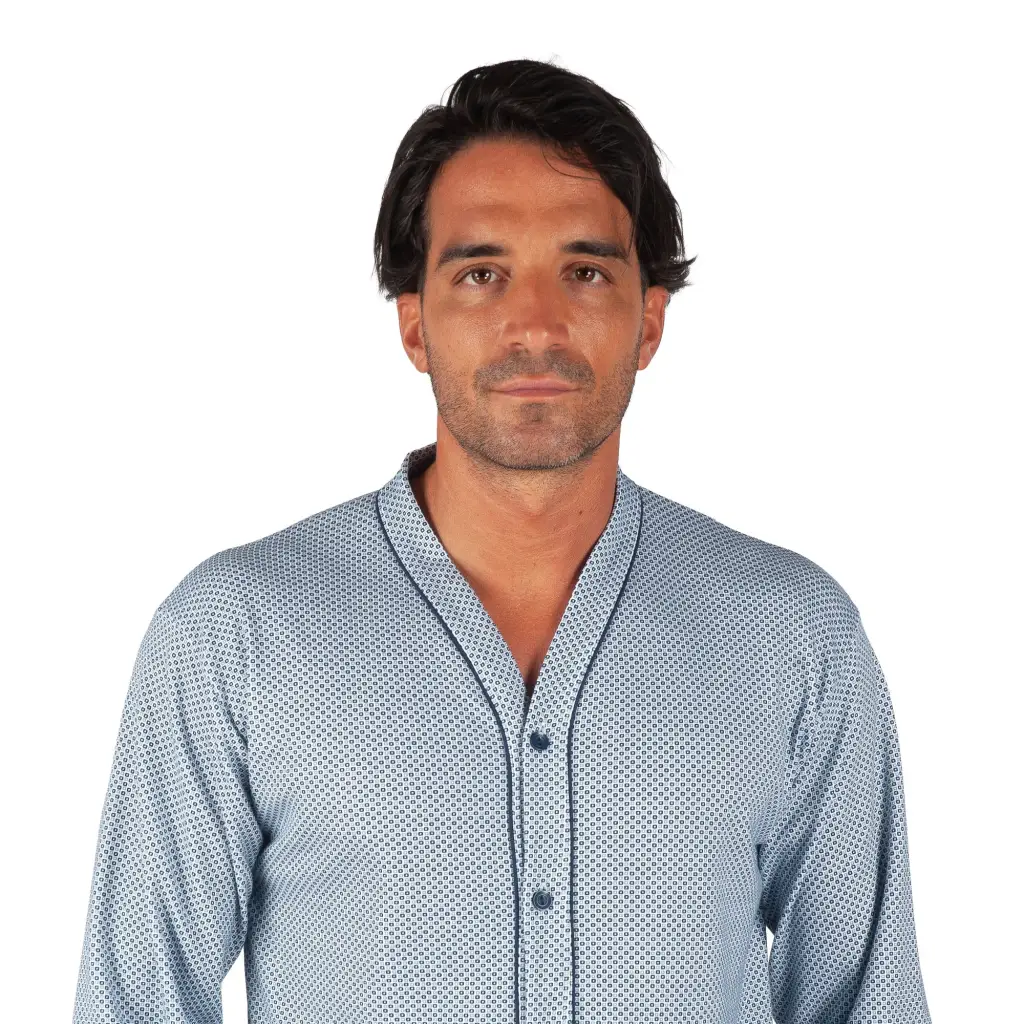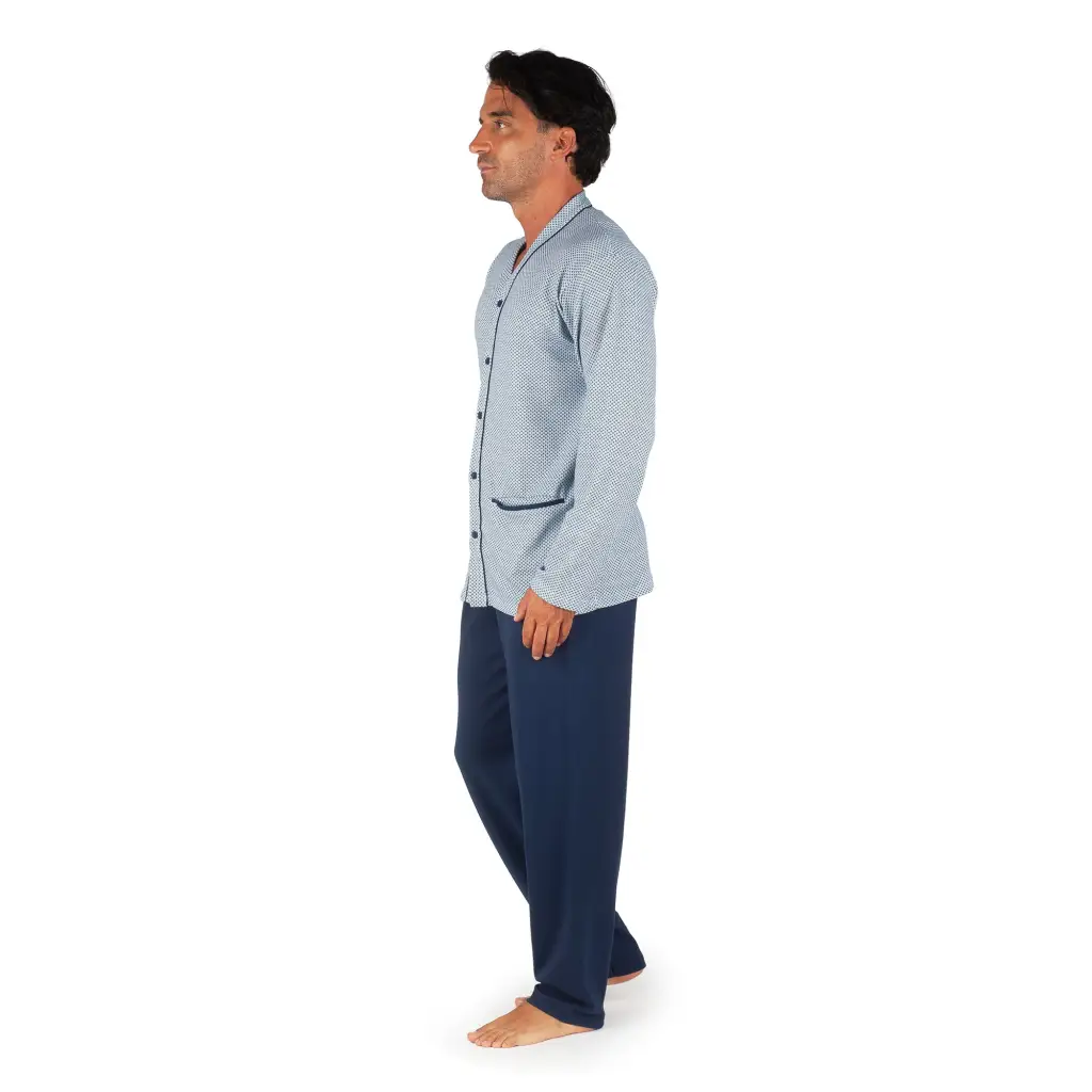 Pigiama uomo aperto davanti in caldo cotone interlock a manica lunga | Mariotti Lab