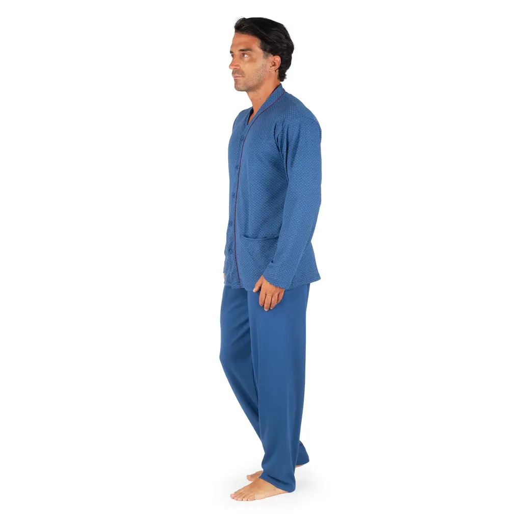 Pigiama uomo aperto davanti in caldo cotone Interlock a manica lunga | Mariotti Lab