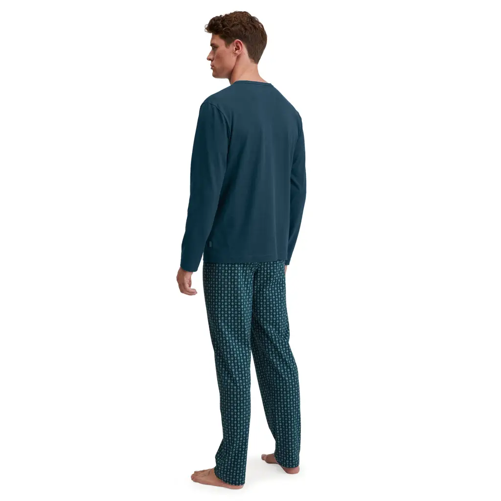 Pigiama con scollo a V a manica lunga in cotone leggero della linea Imprint di Calida. Questo brand svizzero è famoso per la qualità dei materiali che utilizza e per la struttura sapientemente creata dei modelli. Questo pigiama ha un design sportivo e confortevole, grazie allo scollo a V ed al colore particolare e fuori dall’ordinario. Questo modello è realizzato in una fantasia geometrica molto moderna e di tendenza e con dei tocchi di colore perfetti per la stagione primaverile. Il modello ha un’ottima vestibilità ed è perfetto anche per essere utilizzato come abbigliamento casa. I cotone di Calida hanno una facilissima manutenzione, infatti possono essere lavati tranquillamente in lavatrice fino a 40°.
